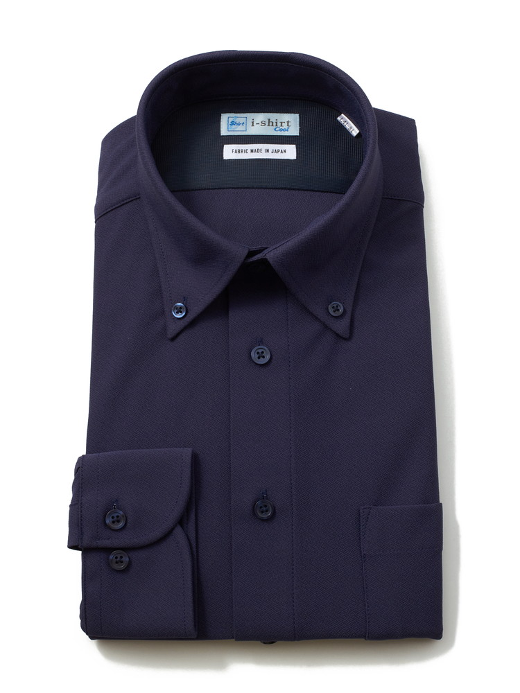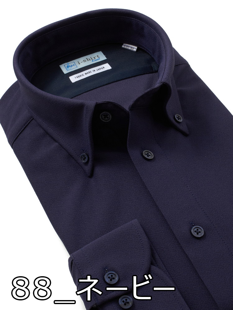 【完全ノーアイロン】長袖 ワイシャツ ボタンダウン【アイスライブ】無地 i-shirt 春夏(ネイビー)
