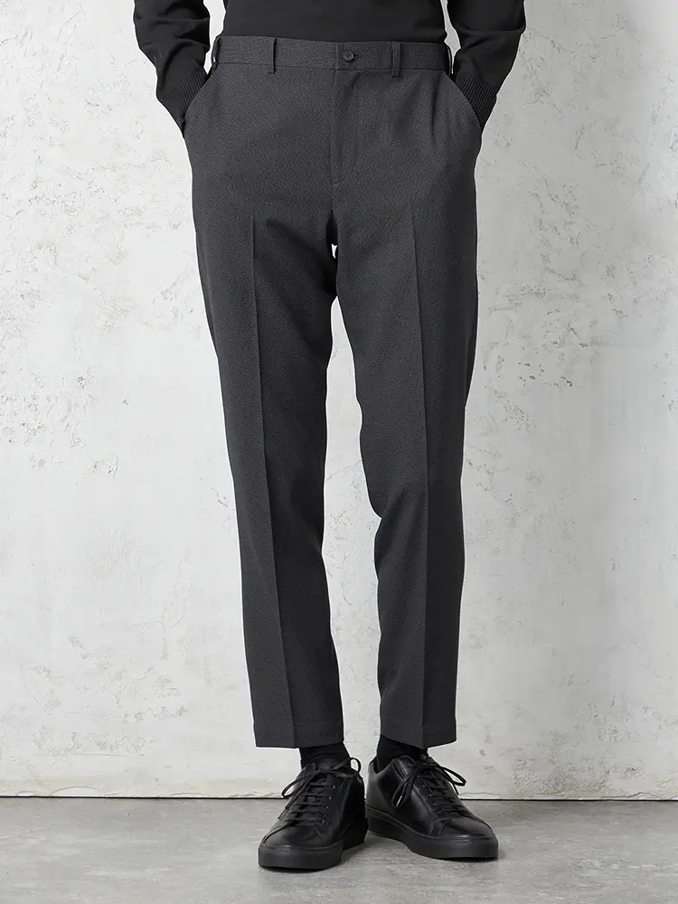 家庭洗濯が可能な股シック付きのノータックパンツです。