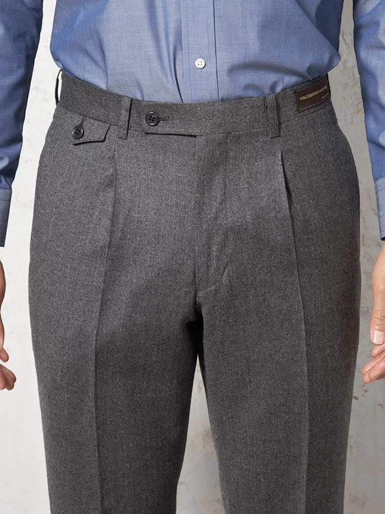 【ウール100%】パンツワンタックイタリアマルラーネ社製生地グレー無地RUCKENBACCHAR