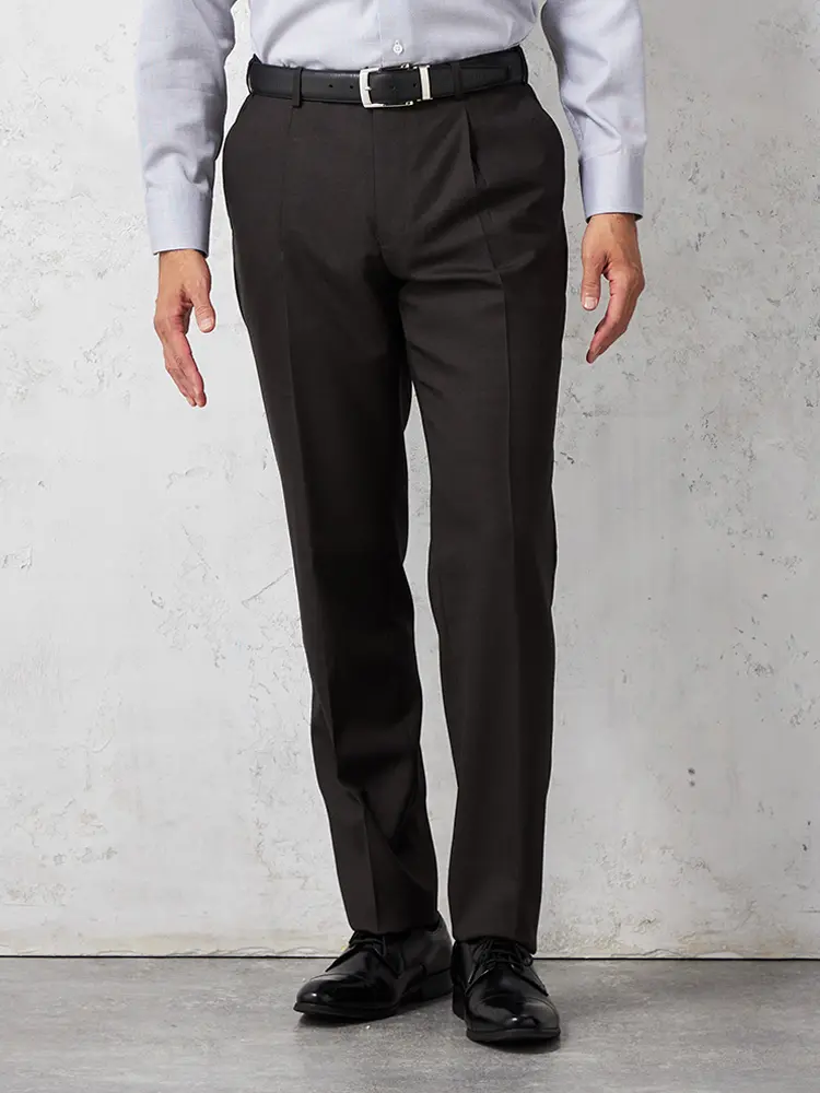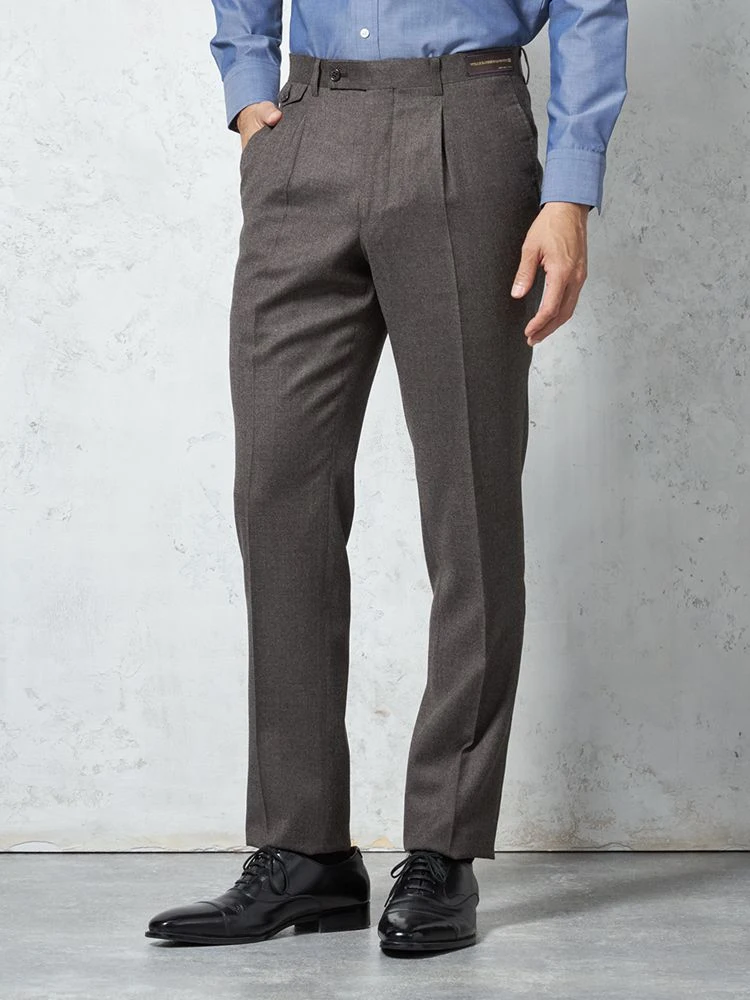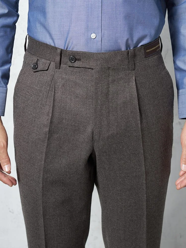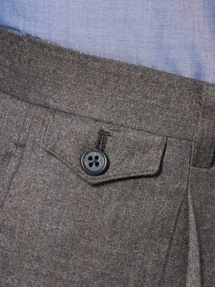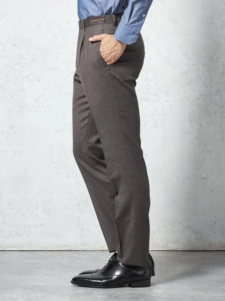 【ウール100%】パンツ ワンタック カノニコ スラックス 無地 S&M BLUE LABEL 秋冬(ブラウン)