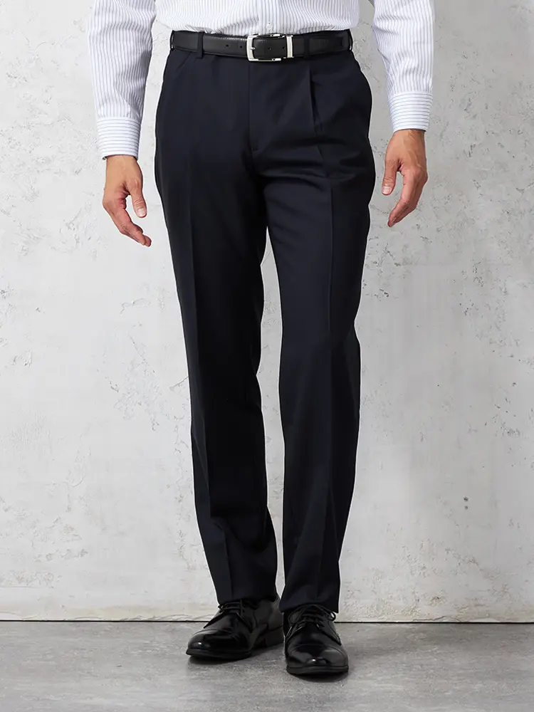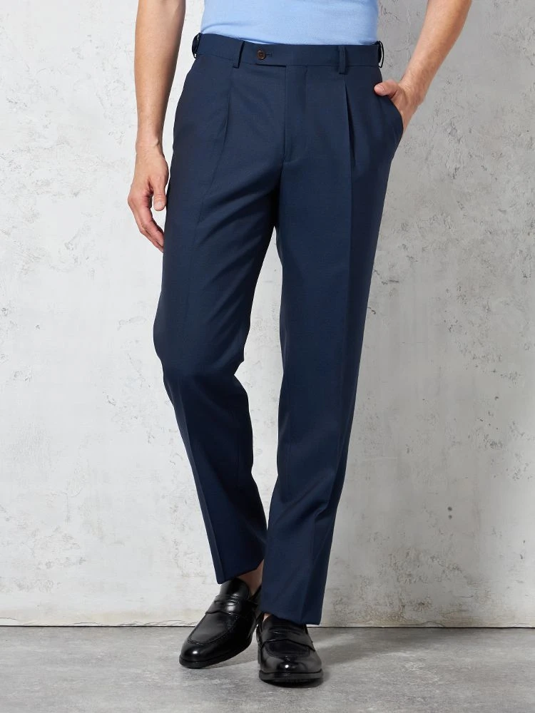 【ウール100%】パンツワンタックイタリアマルラーネ社製生地ネイビー無地RUCKENBACCHAR