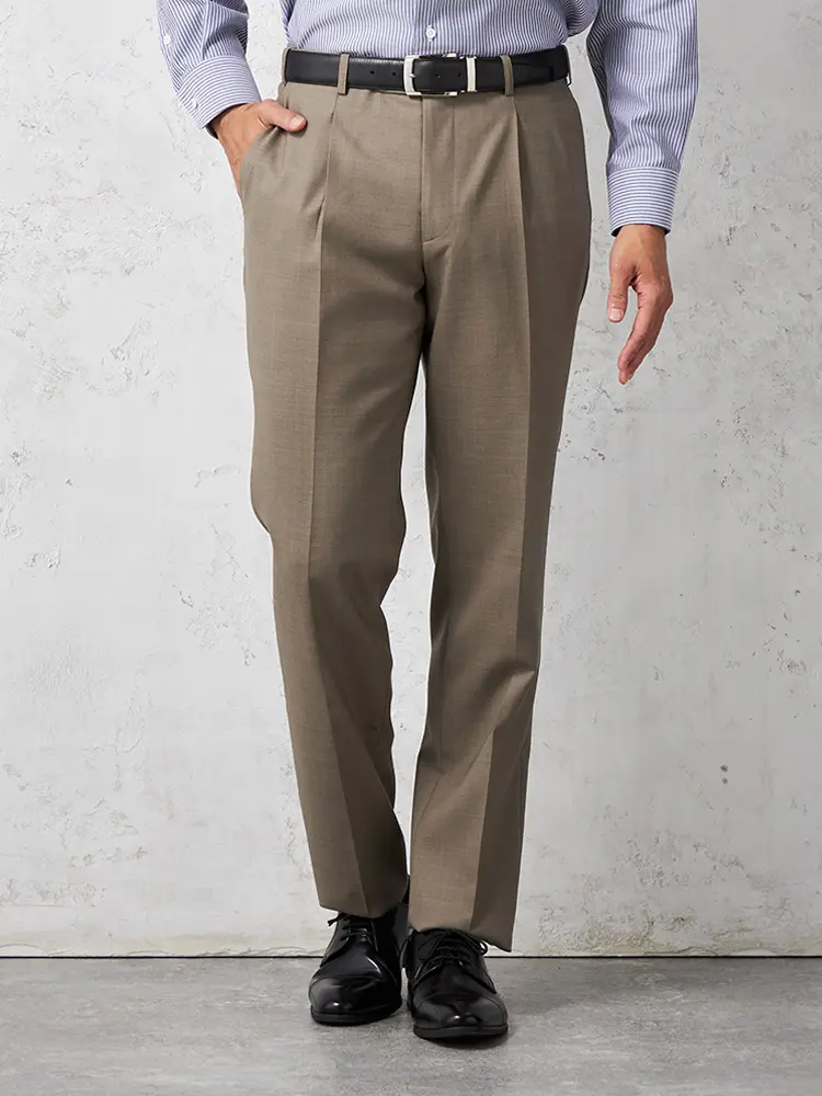【ウール100%】パンツワンタックイタリアマルラーネ社製生地ベージュ無地RUCKENBACCHAR