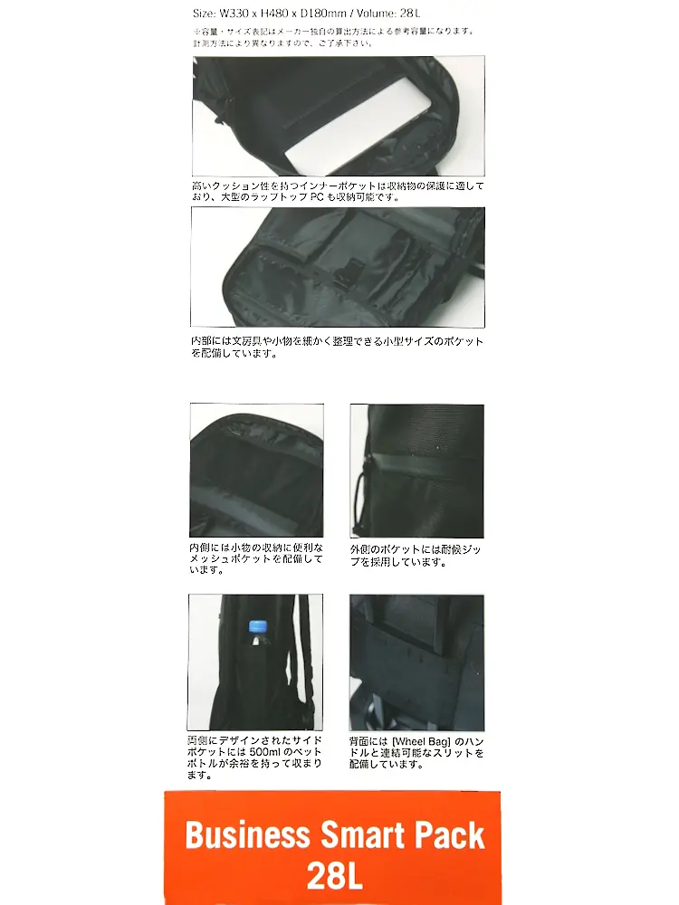 定番モデルのスマートパックをビジネスシーンに馴染むようアレンジしました。