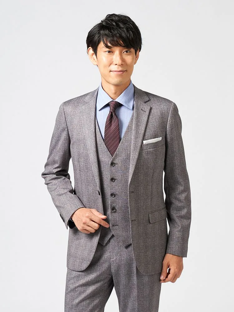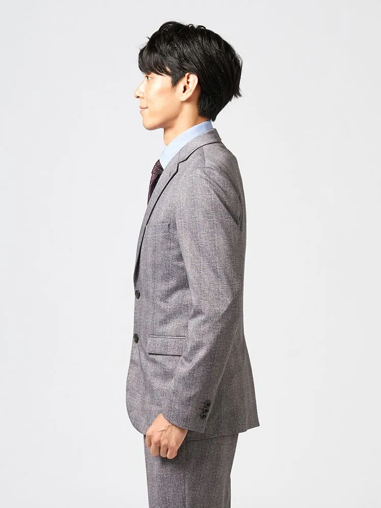 【即納】スーツ2つボタン【WEB限定】上下ウォッシャブルM.グレー小柄3シーズン対応