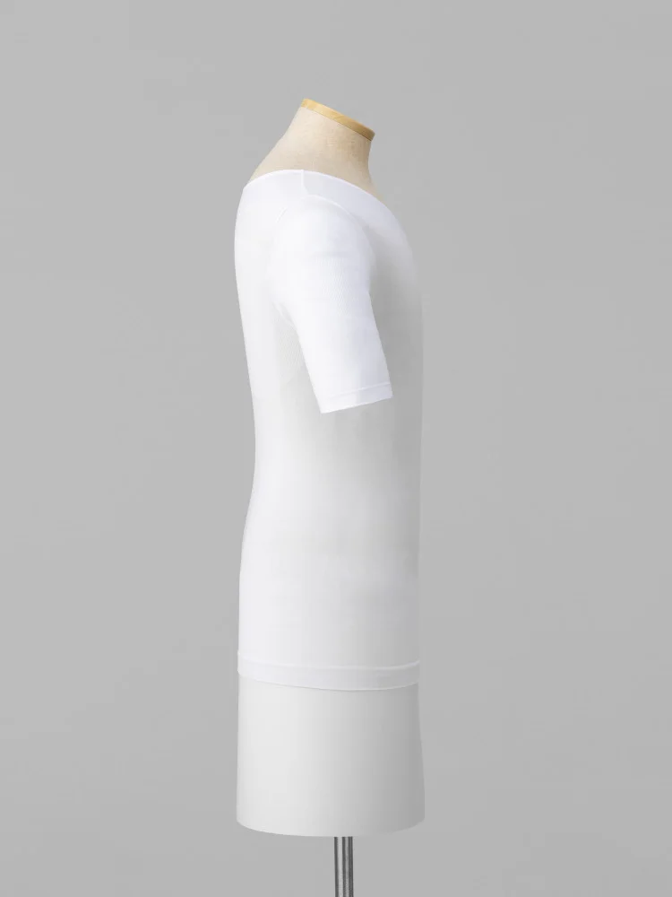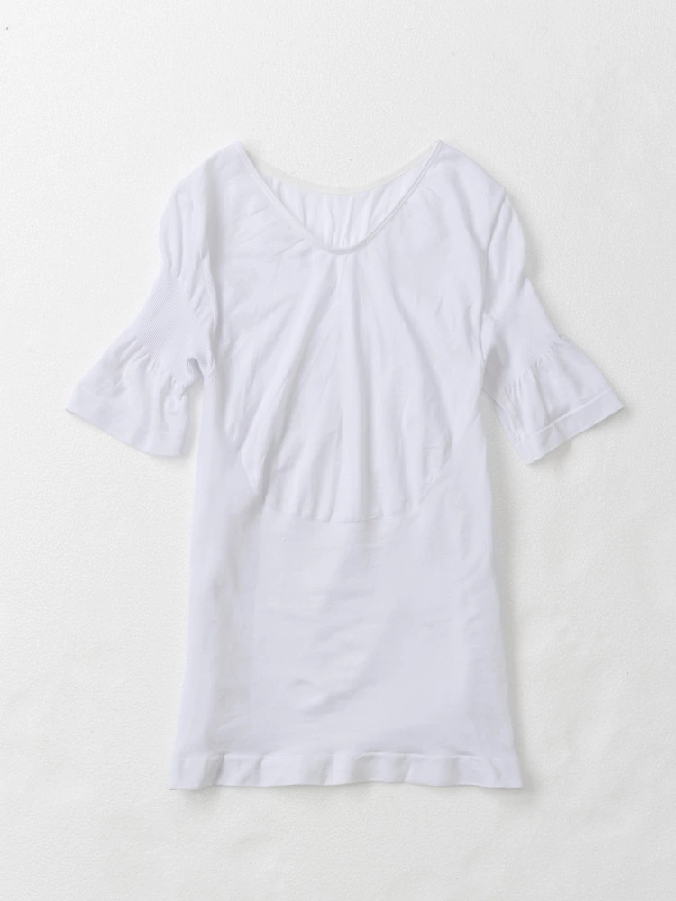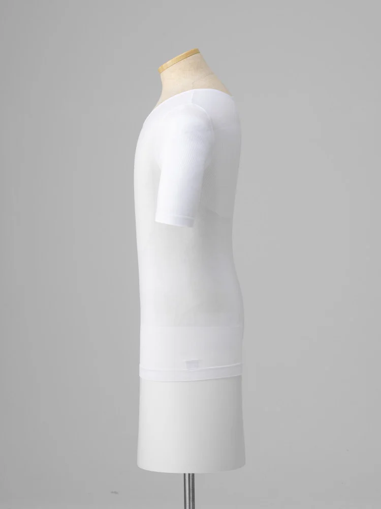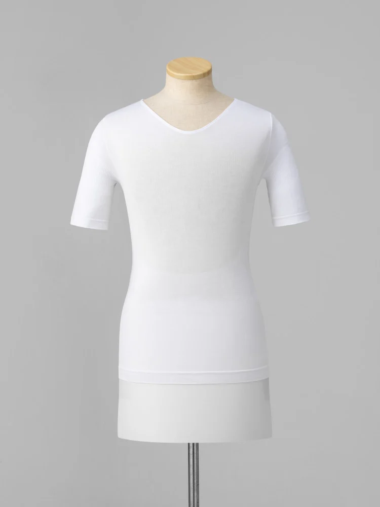 着るだけで正しい姿勢をサポートする『姿勢快服』Vネック半袖インナーシャツ。