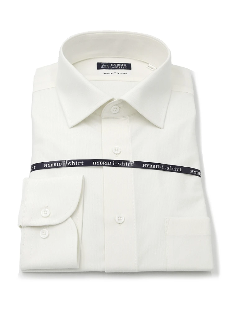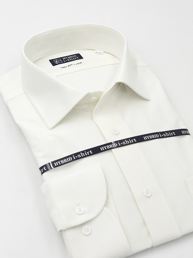 【ハイブリッドアイシャツ】ウール混素材 長袖 ワイシャツ カッタウェイ 形態安定 織柄無地 通年(ホワイト)