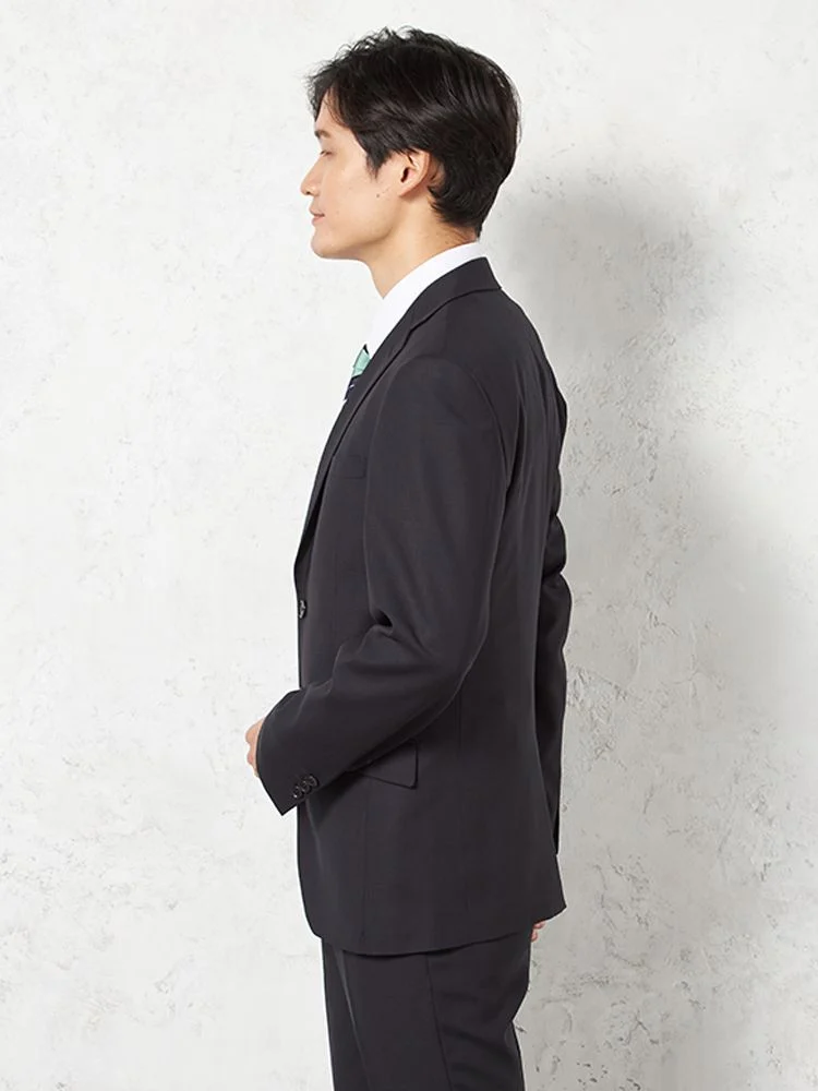 切り込みが1本のセンターベントデザインです。細身でスッキリとしたシルエットが特徴で、快適な着心地を提供します