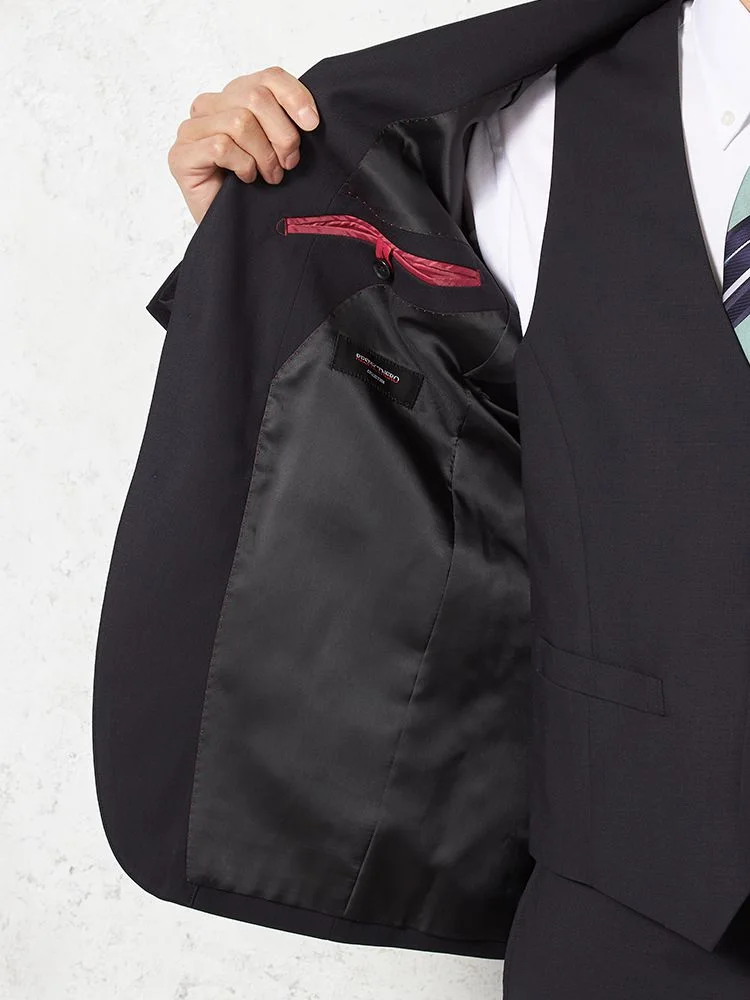 【ウール100%】スリーピーススーツ 2つボタン スリムシルエット ノータック 織柄無地 nero【スリムデザイン】