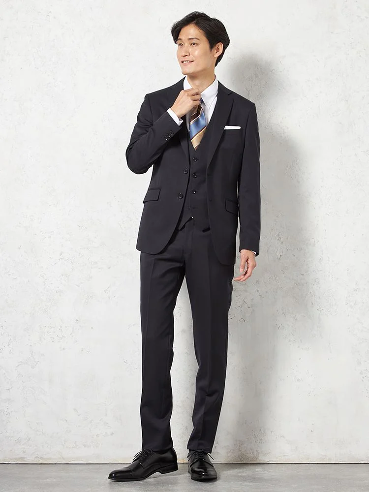 【上下ウォッシャブル】スリーピーススーツ 2つボタン 脚長シルエット 無地 nero 通年【スリムデザイン】