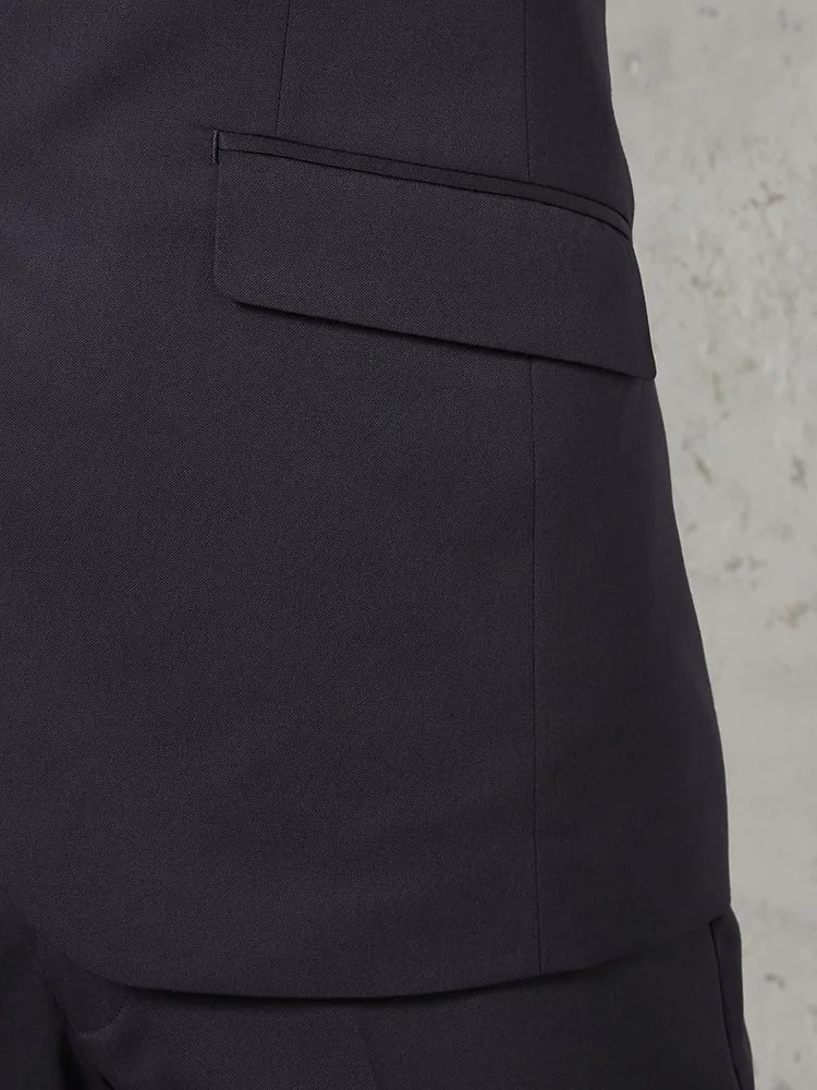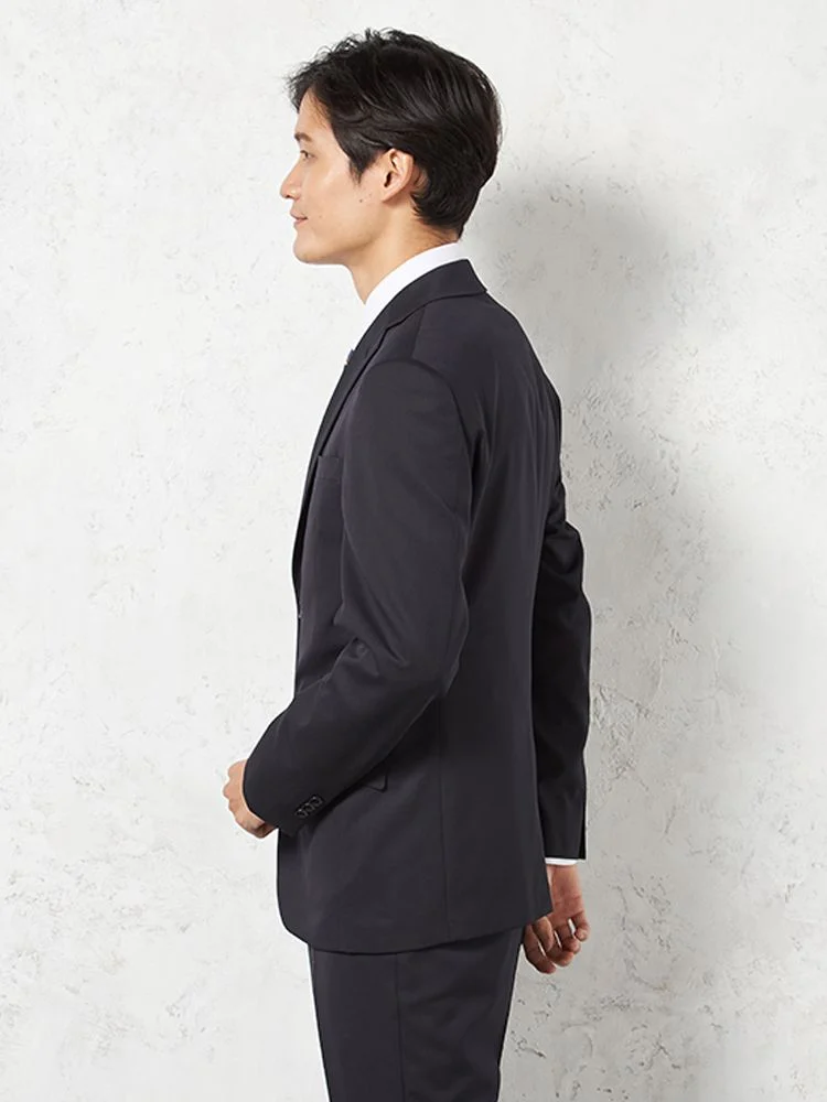 切り込みが1本のセンターベントデザインです。細身でスッキリとしたシルエットが特徴で、快適な着心地を提供します