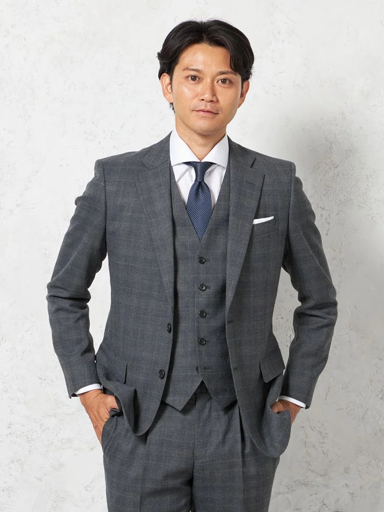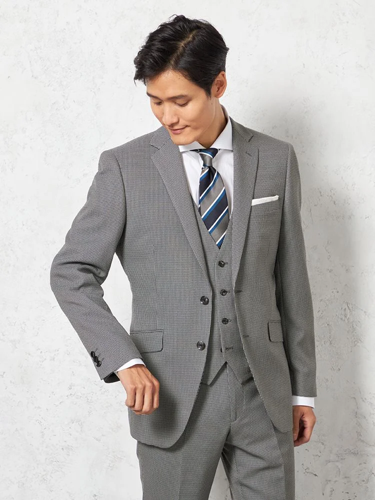 【即納】スーツ2つボタン【WEB限定】上下ウォッシャブルM.グレー小柄3シーズン対応