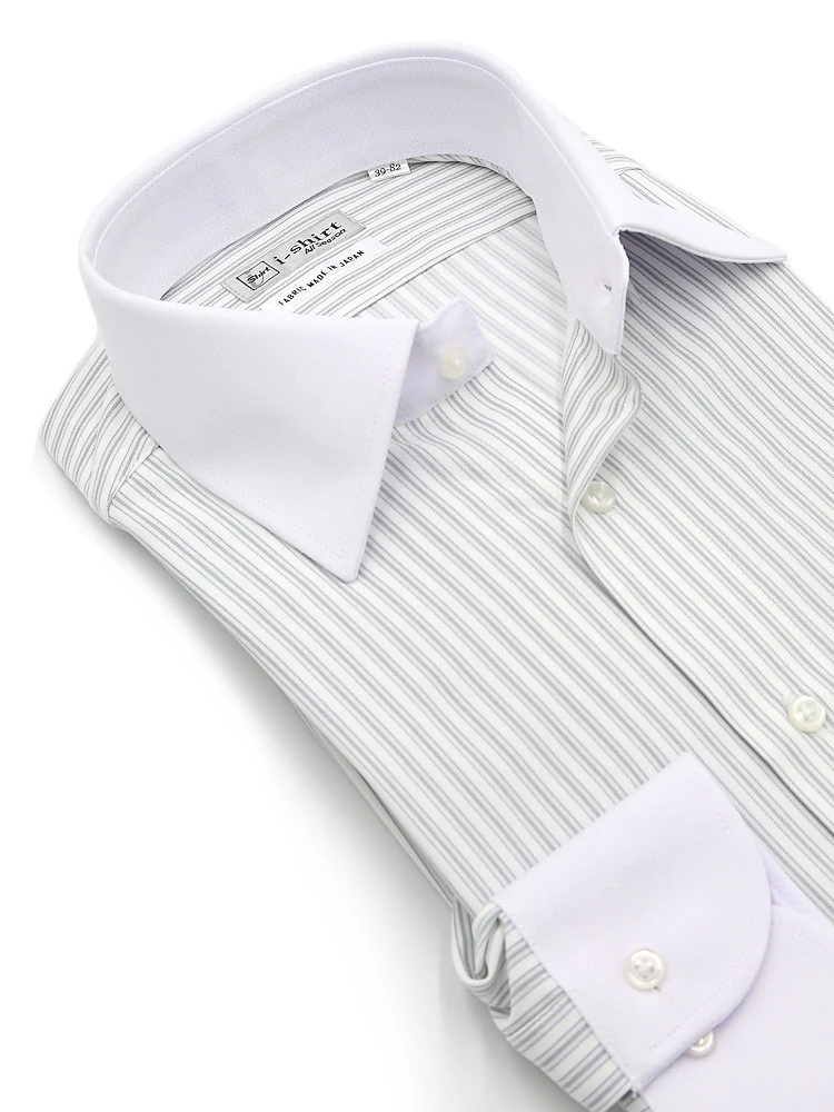 【完全ノーアイロン】長袖 アイシャツ クレリック セミワイド ストライプ ワイシャツ i-shirt 通年(M.グレー)