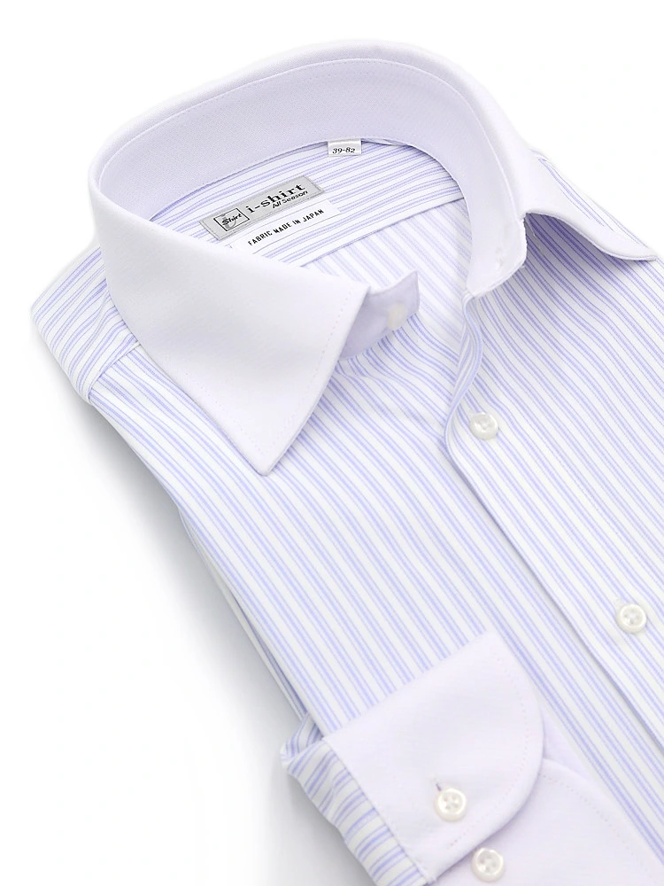 【完全ノーアイロン】長袖アイシャツセミワイドストレッチ吸水速乾ストライプワイシャツi-shirt通年