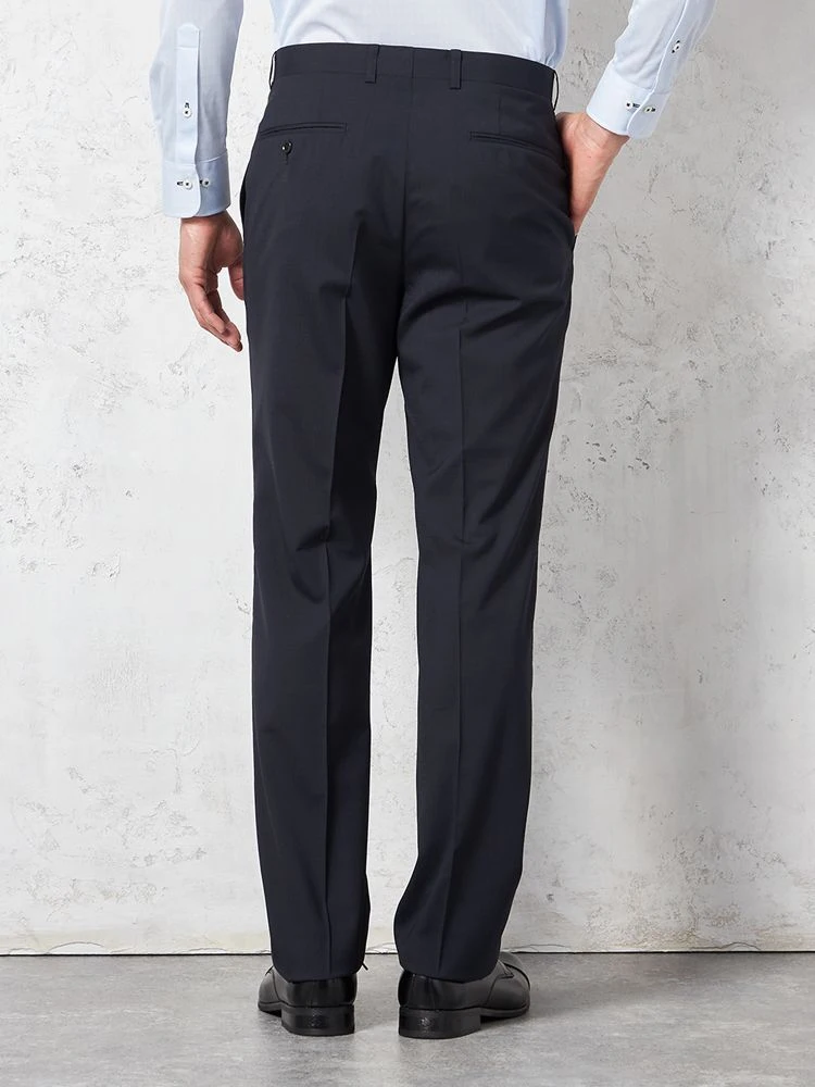 パンツの腰回りに生地の折り込みがなく、スッキリとしたシルエットを実現します。シンプルで洗練された印象を与え、すっきりとした着こなしが可能です。