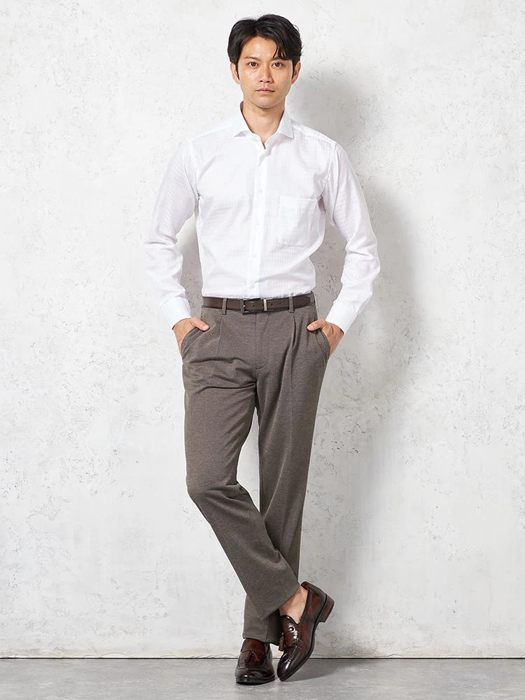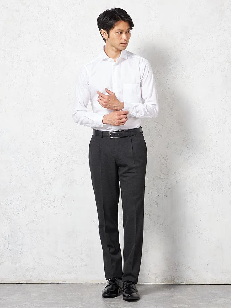 上下を揃えれば、ベーシックなスーツスタイルとしても着用できます。