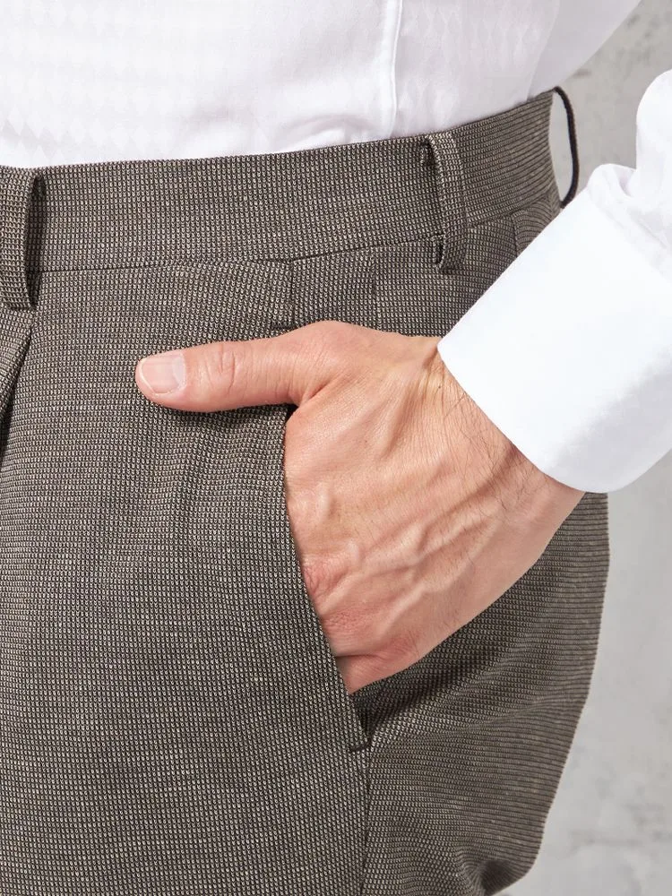 ナチュラルな素材感が軽やかさをアピールする、リネン混のスラックス。