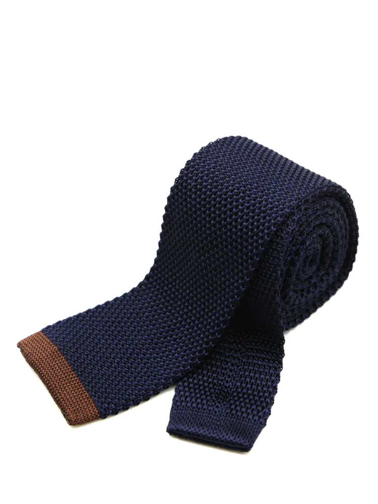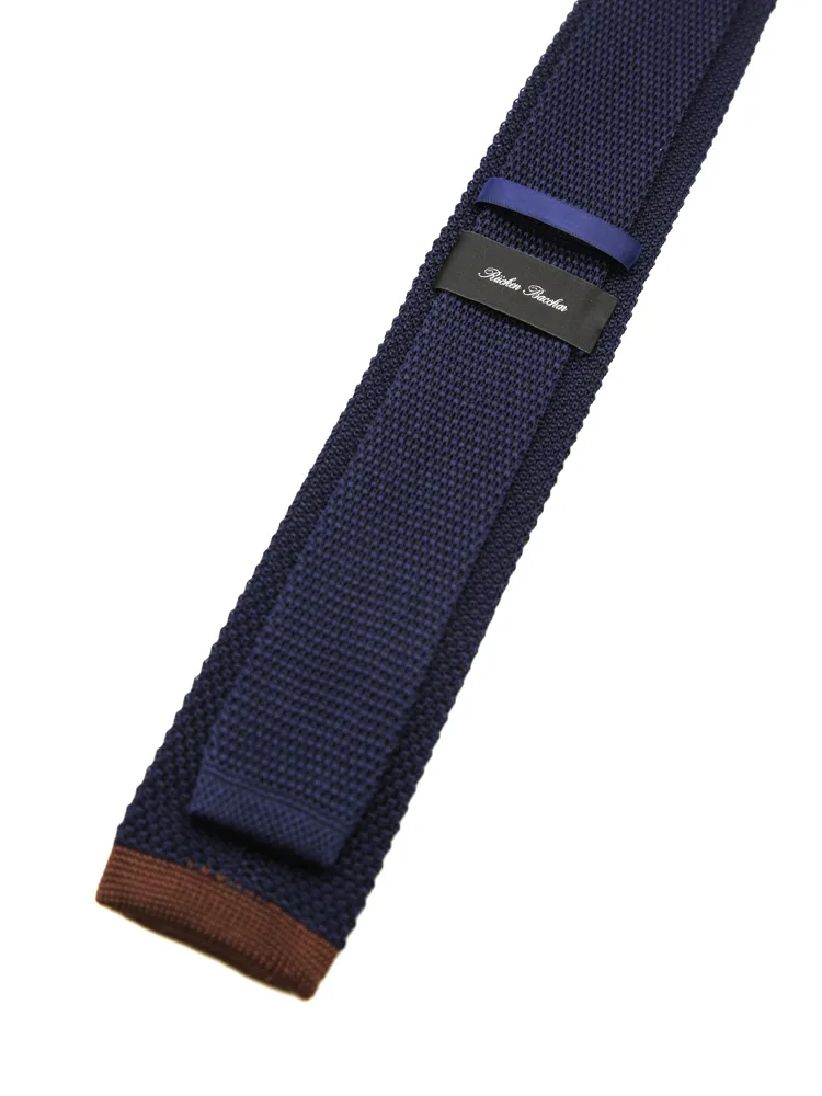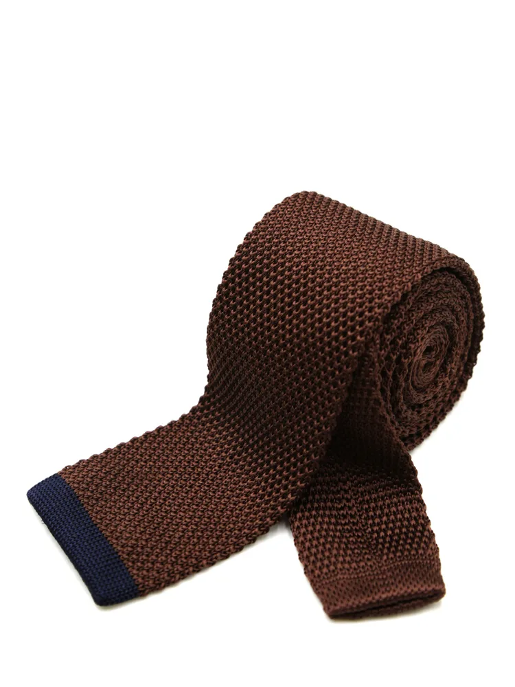 【シルク100%】ニットタイ ネクタイ ナロー シルク 無地 リッケンバッカー(ブラウン)