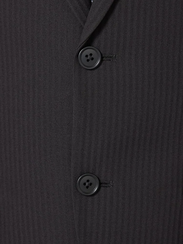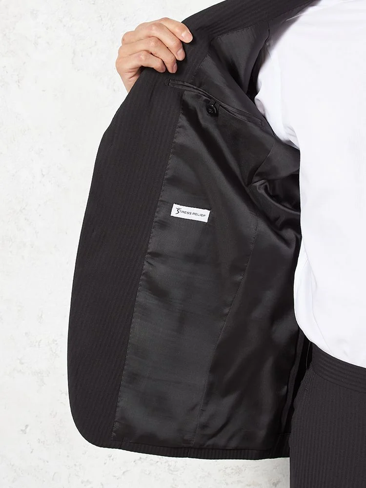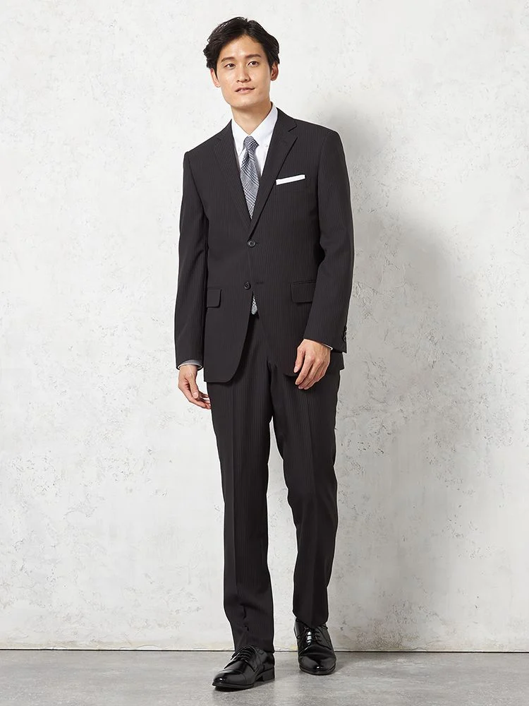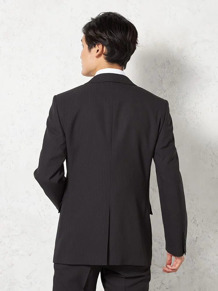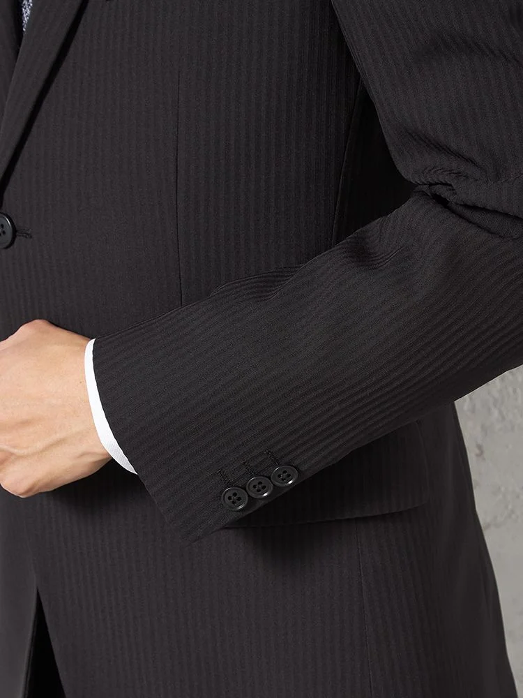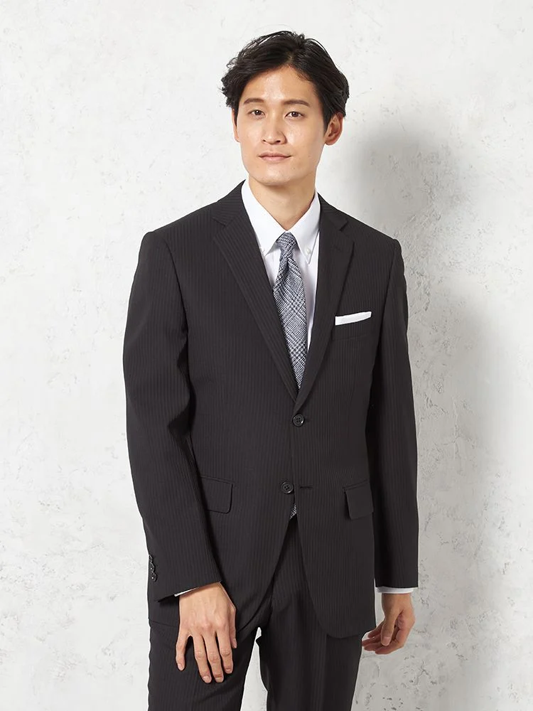 【即納】スリーピーススーツ2つボタン【WEB限定】上下ウォッシャブルブラックシャドウストライプ3シーズン対応