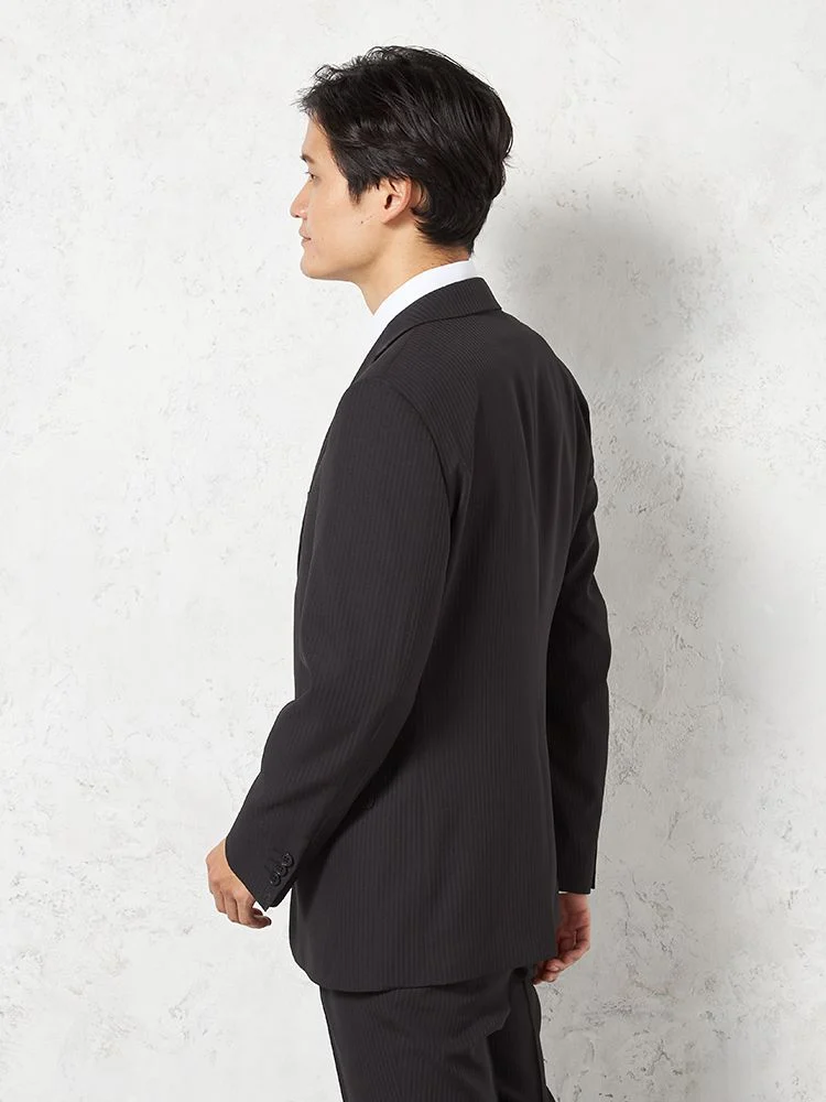 【即納】【WEB限定】スーツ 2つボタン4WAYストレッチ 上下ウォッシャブル シャドウストライプ ブラック
