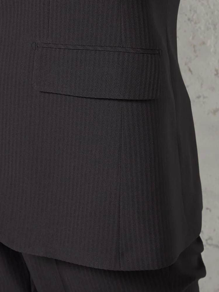 切り込みが1本のセンターベントデザインです。細身でスッキリとしたシルエットが特徴で、快適な着心地を提供します