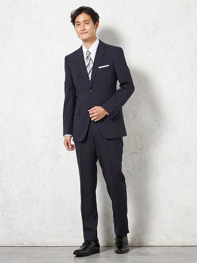 【即納】【WEB限定】スーツ2つボタンネイビーシャドウストライプ上下ウォッシャブル3シーズン対応