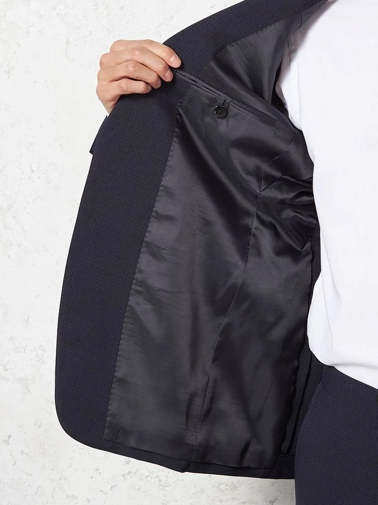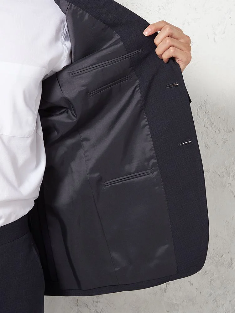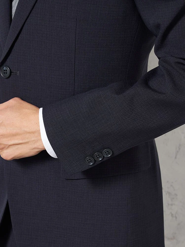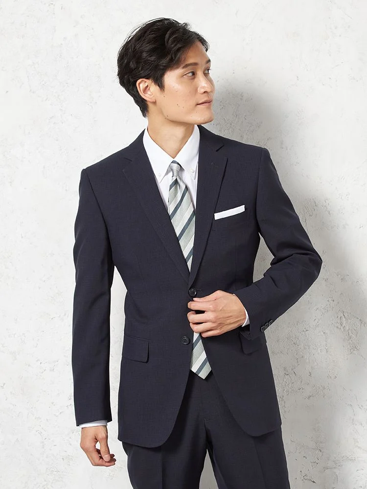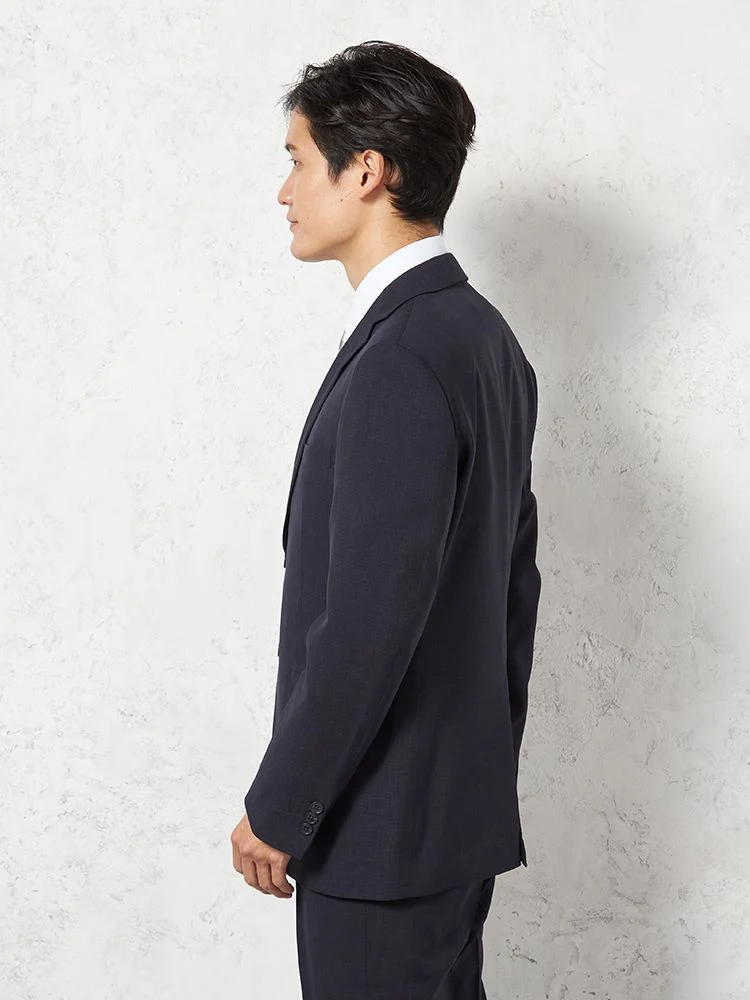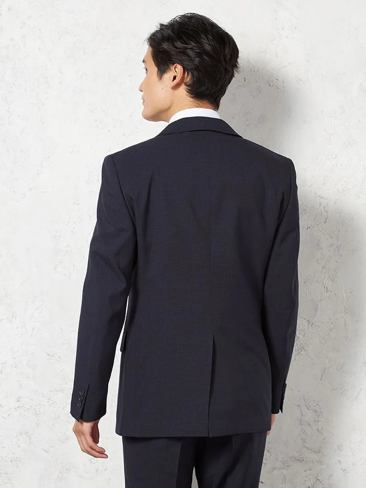【即納】スーツ2つボタン【WEB限定】4WAYストレッチマイクロチェックネイビー