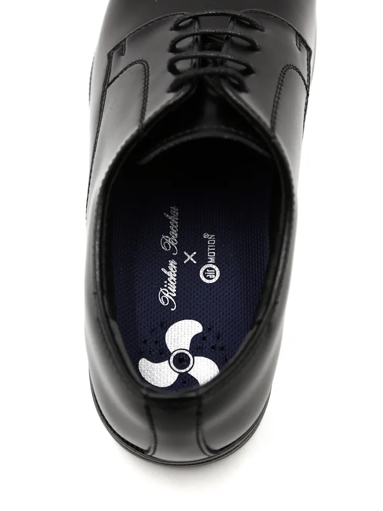 【消臭加工】シューズラウンドトゥ外羽根ヒモスワールnero