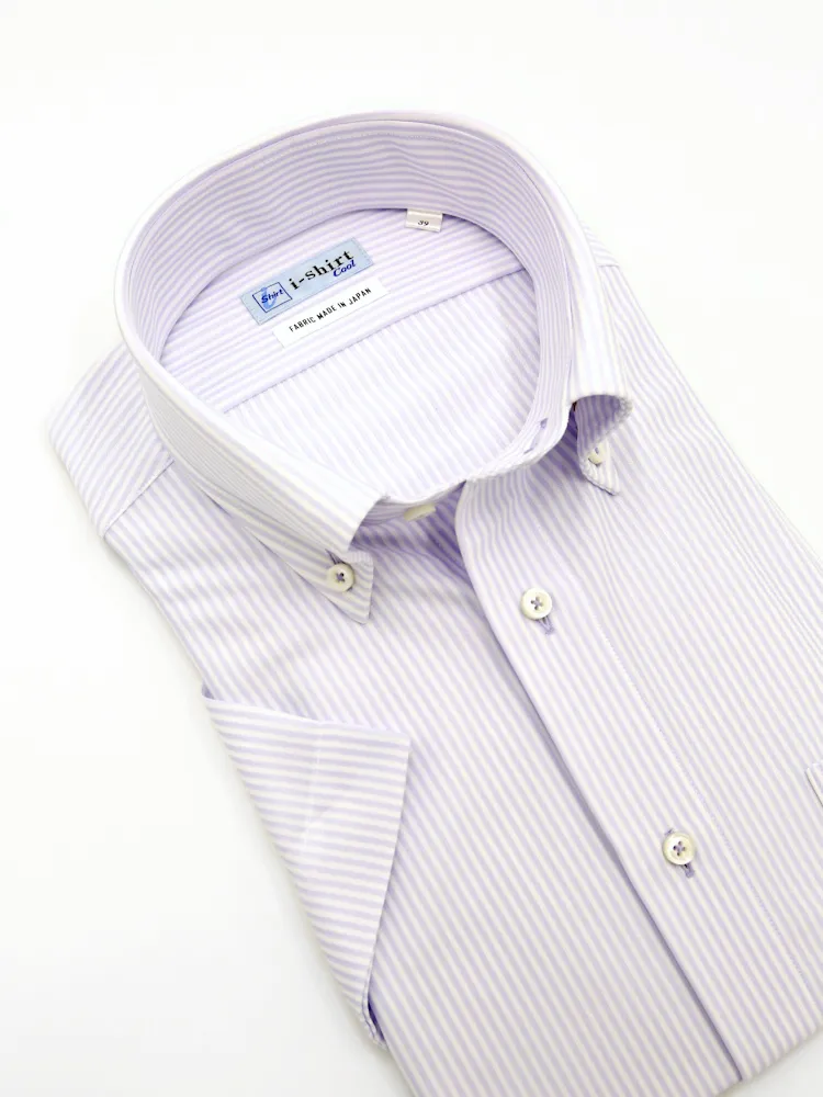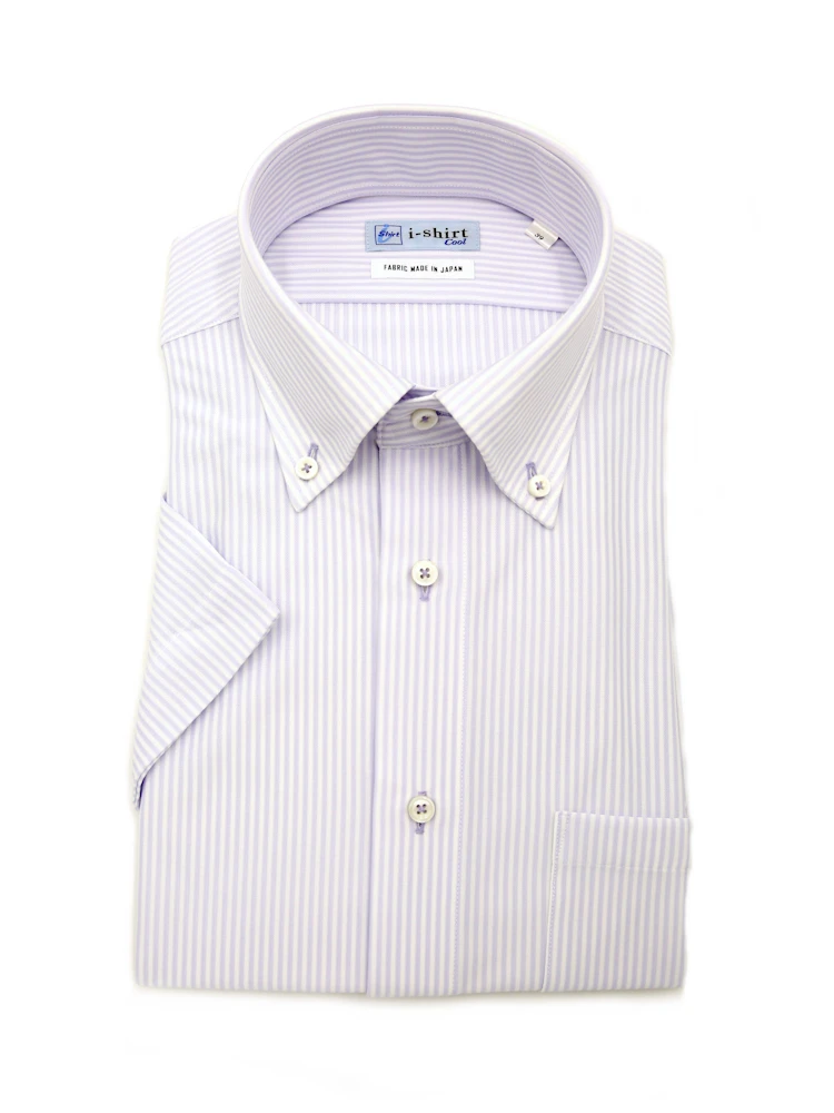 【完全ノーアイロン】半袖アイシャツボタンダウン【バイオセンサークール生地使用】高通気冷感ストライプワイシャツi-shirt春夏