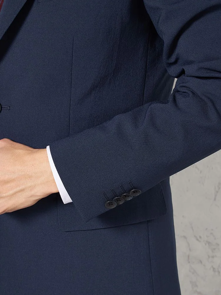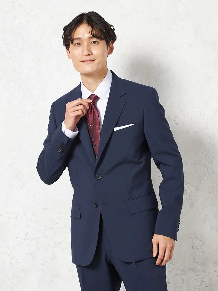 【パンツウォッシャブル】スーツ 段返り3つボタン リネンライク ライトフィール ドライタッチ 軽量 ネービー リッケンバッカー 春夏
