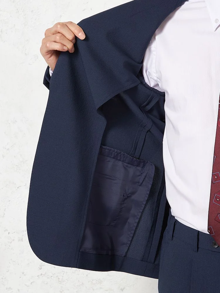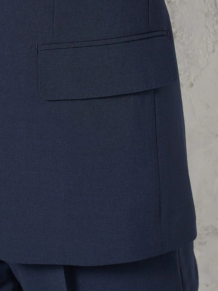 切り込みが1本のセンターベントデザインです。細身でスッキリとしたシルエットが特徴で、快適な着心地を提供します