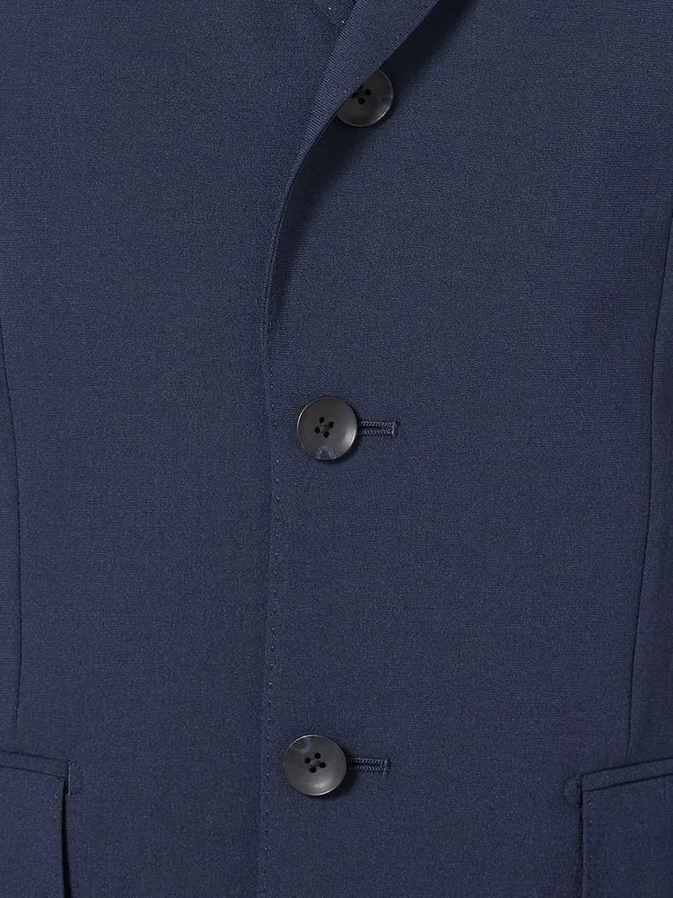 段返りの3つボタンデザインで、シンプルながらも品格を感じさせる仕上がり。きちんと感があり、フォーマルにも最適です。