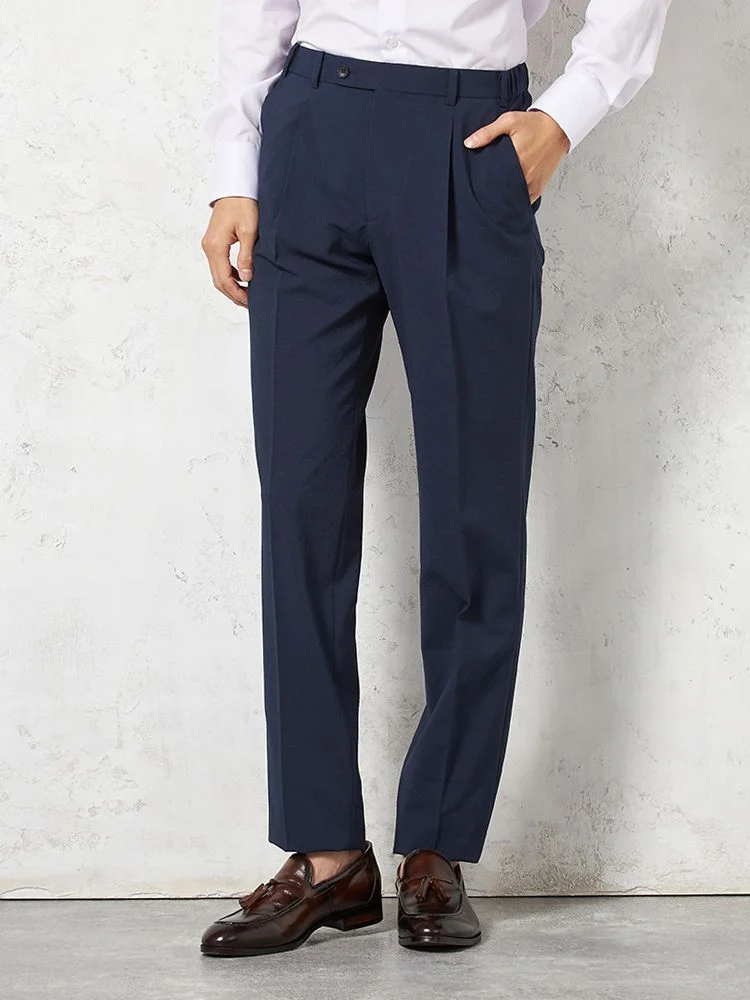 スタンダードなストレートラインのボトムには、タックを施すことでシルエットに立体感をプラスしました。