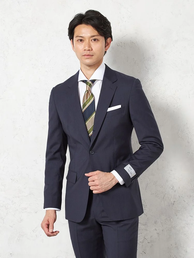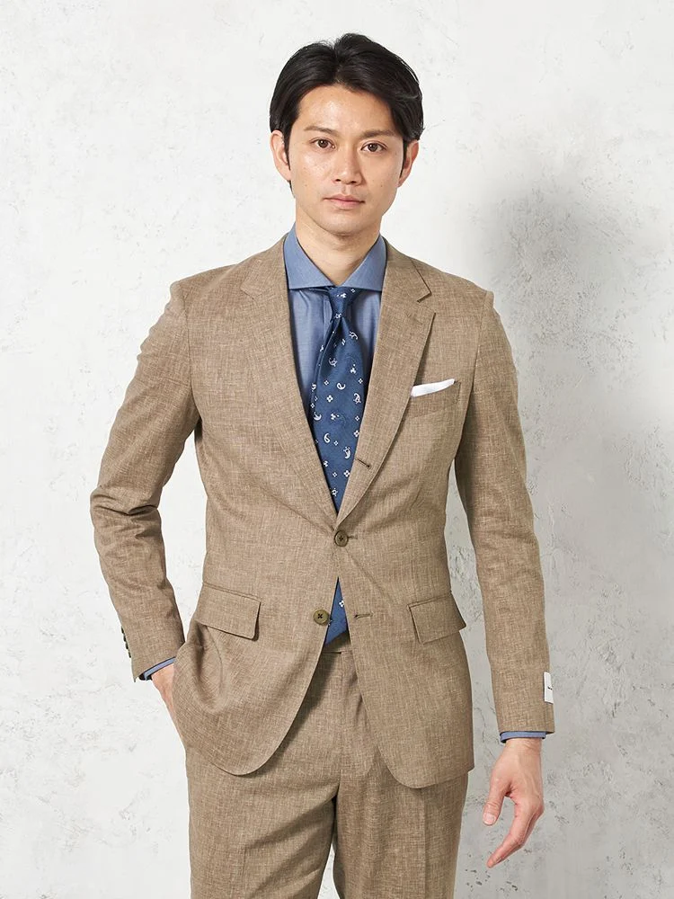 尾州産リネン混ストレッチ素材を使用した、ライトフィール仕立てのスーツです。