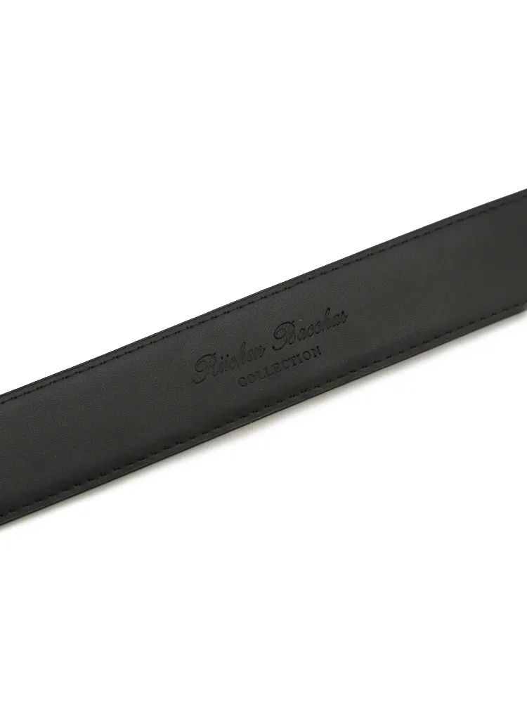 合わせるボトムを選ばない、シンプルなデザインのベルト。