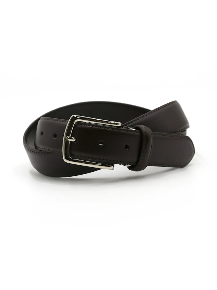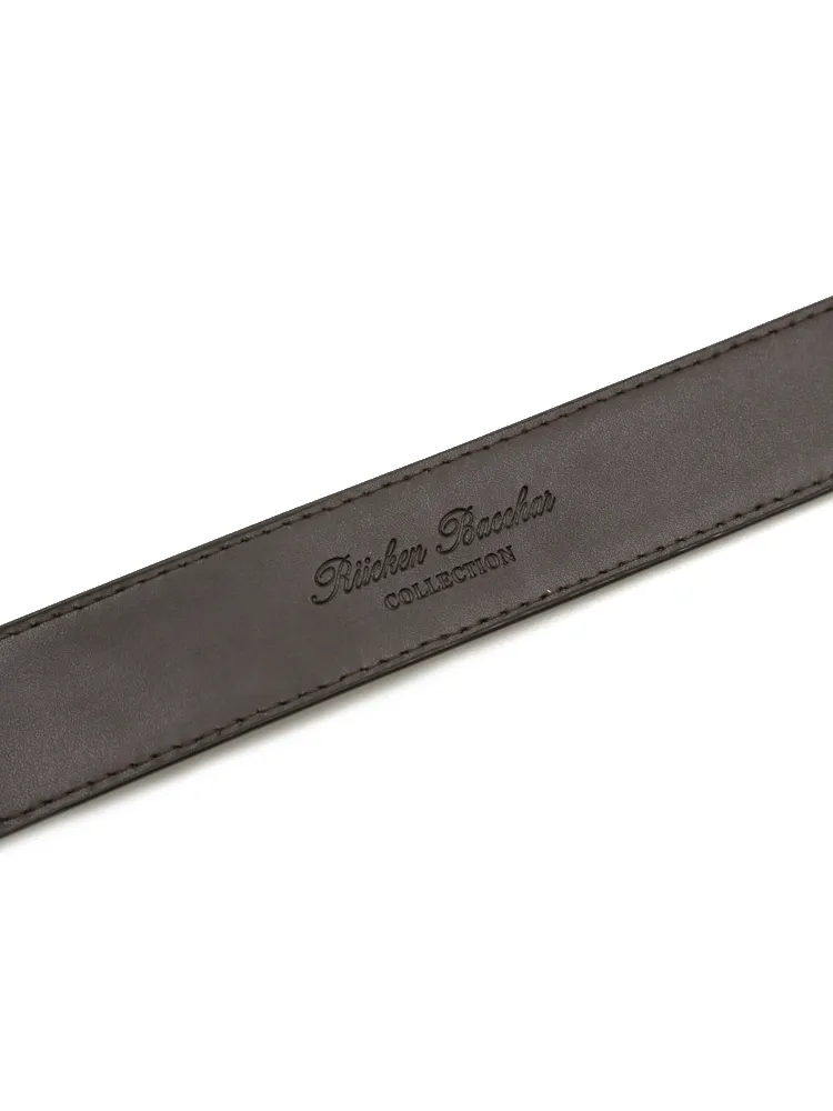【牛革】メンズベルト ビジネス 35mm幅 丸型美錠 シュリンク リッケンバッカー 通年(D.ブラウン)