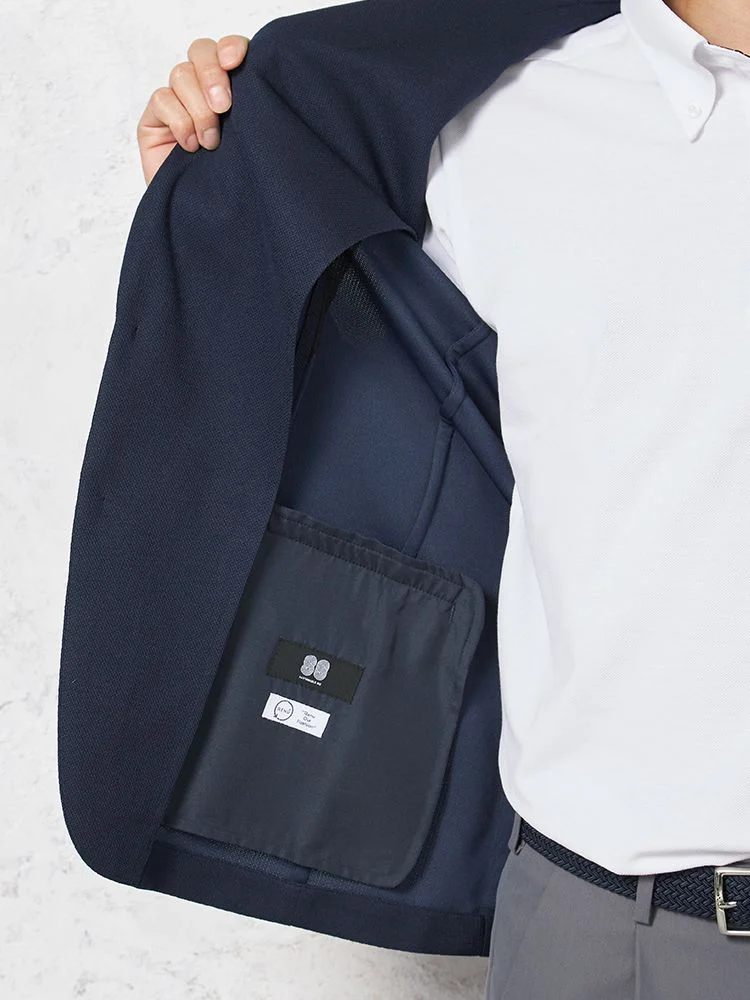 切り込みが1本のセンターベントデザインです。細身でスッキリとしたシルエットが特徴で、快適な着心地を提供します