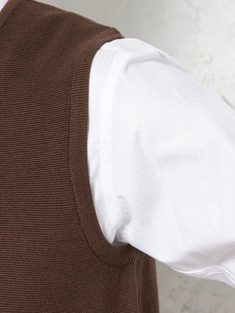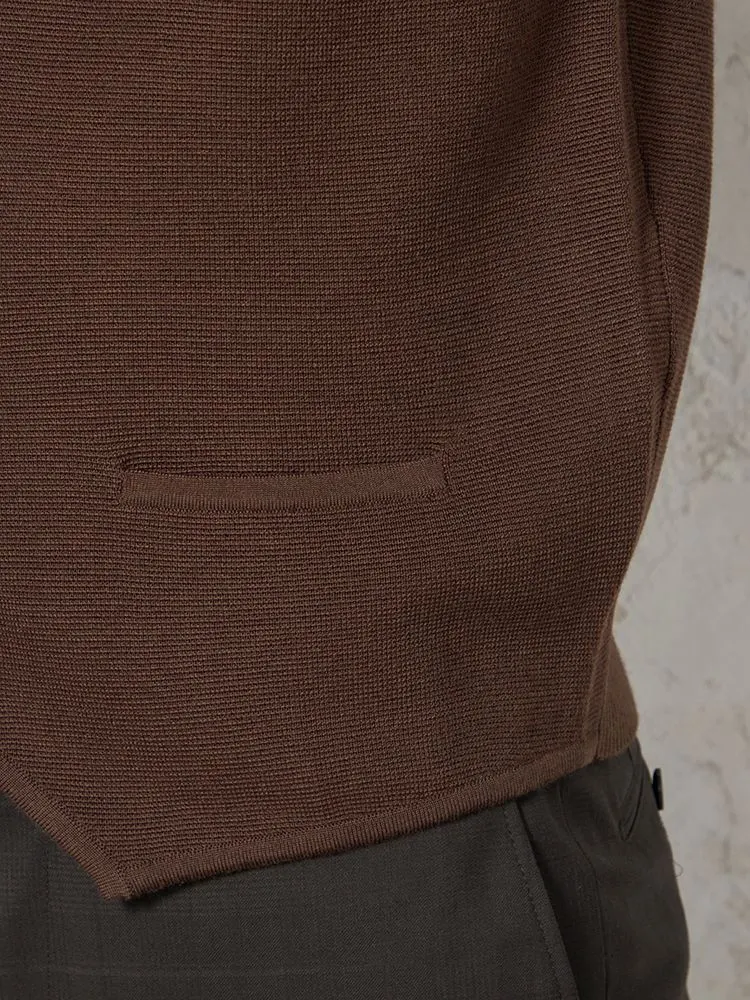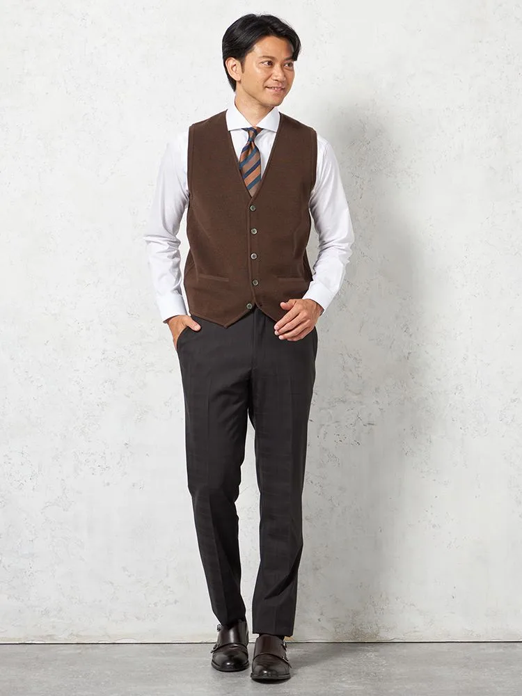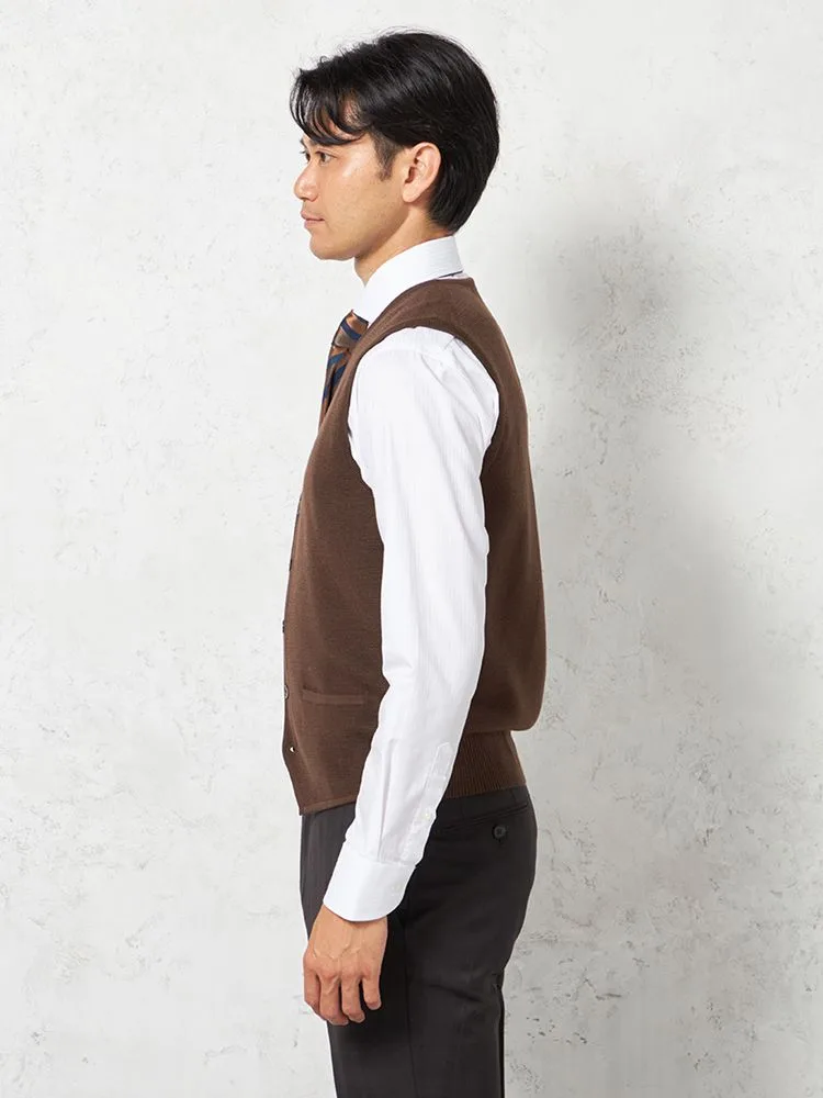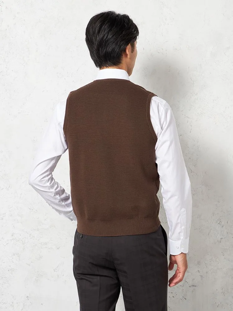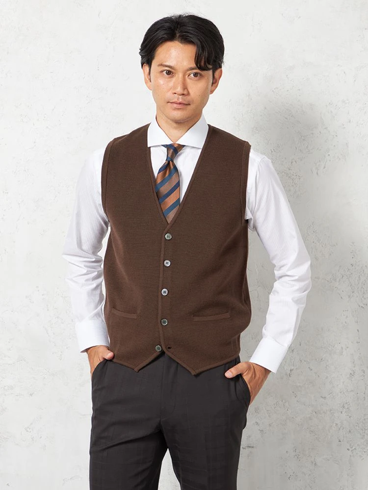 【ウォッシャブル】ミラノリブ 前割れベスト 放電 抗ピリング 無地 ベスト リッケンバッカー 秋冬(ブラウン)