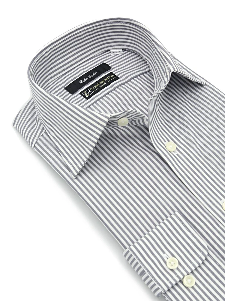 【形態安定】長袖ワイシャツセミワイドイージーケアストライプRONPOSTAL通年
