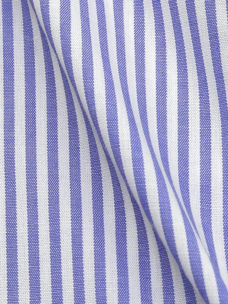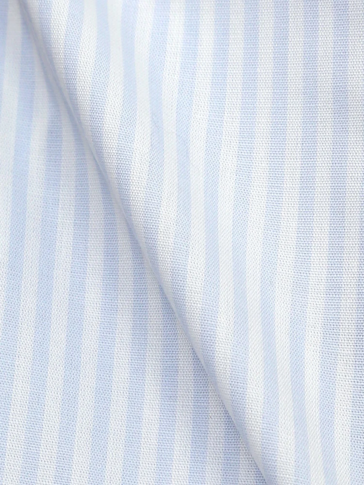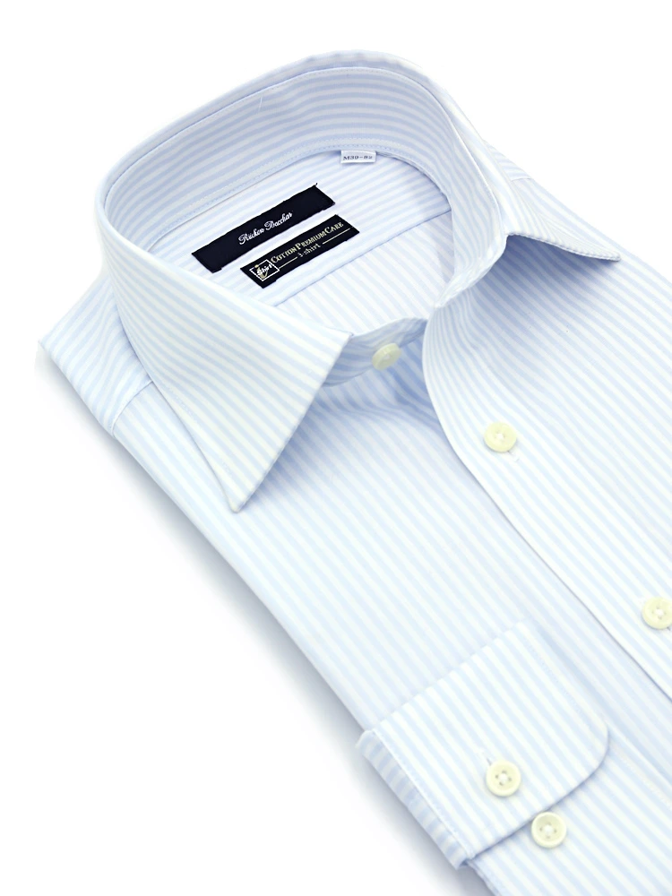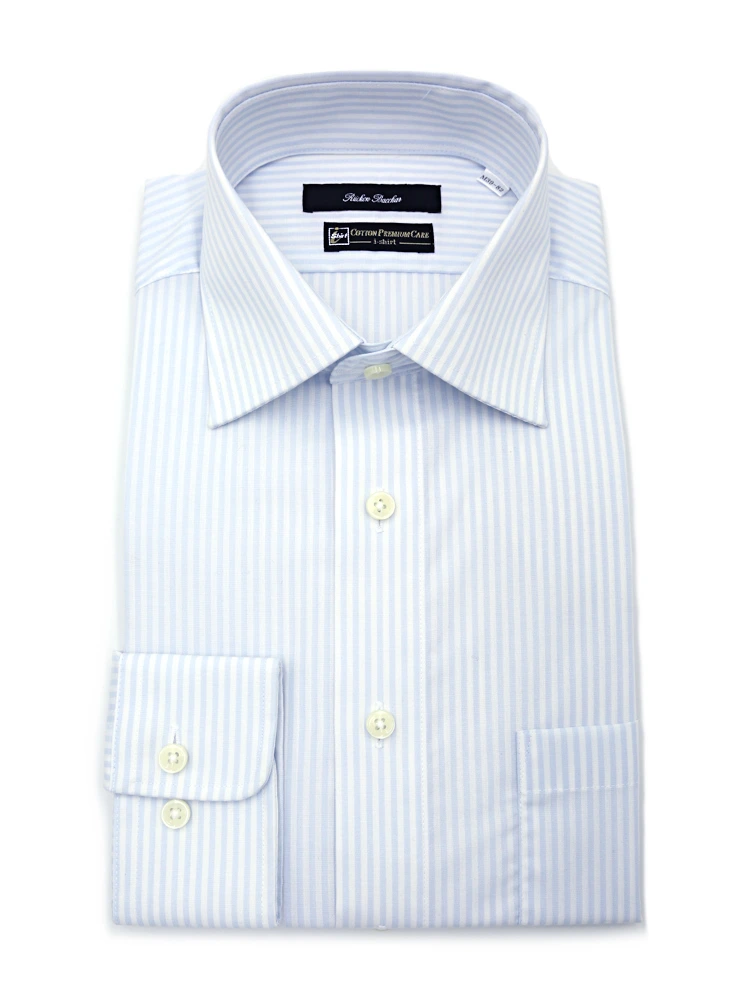 【形態安定】長袖 ワイシャツ セミワイド【コットンプレミアムケア】ストライプ リッケンバッカー 通年(サックス)