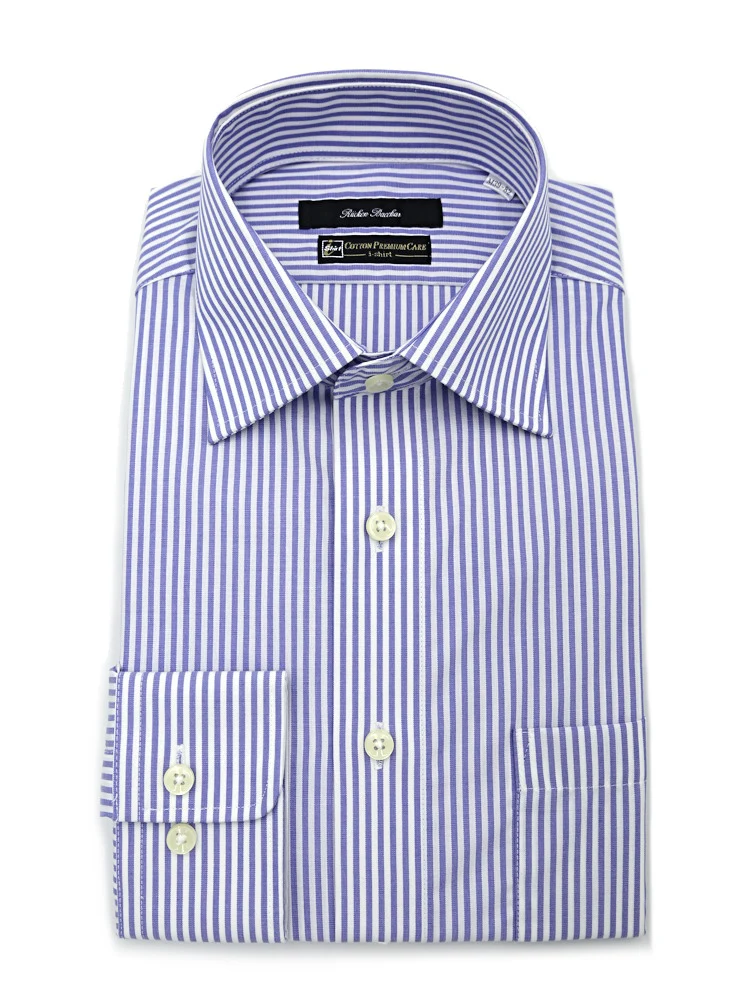 【形態安定】長袖ワイシャツボタンダウン【コットンプレミアムケア】ストライプリッケンバッカー通年