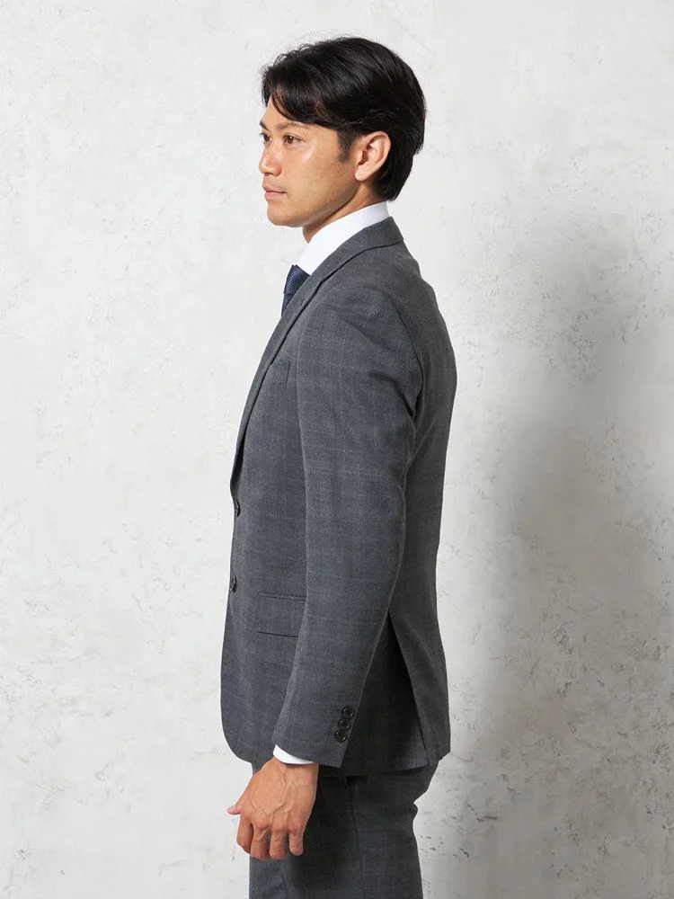 【上下ウォッシャブル】スリーピーススーツ2つボタン軽量ミルドストレッチチェックリッケンバッカー秋冬