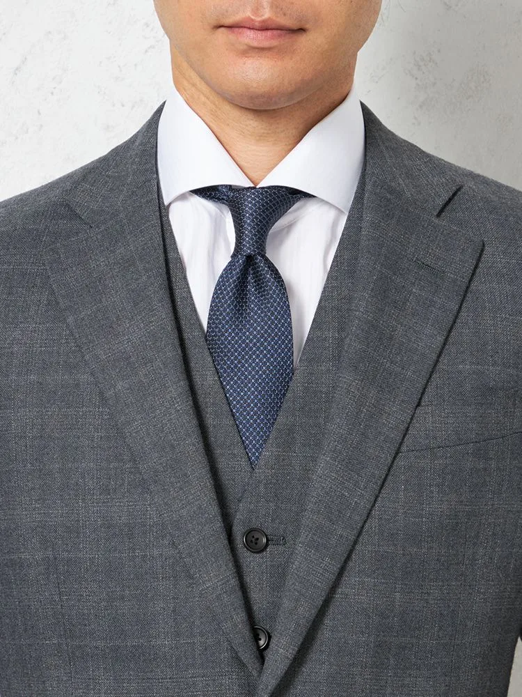 暗すぎず明るすぎない色合いは、主張の強いネクタイとも好相性。