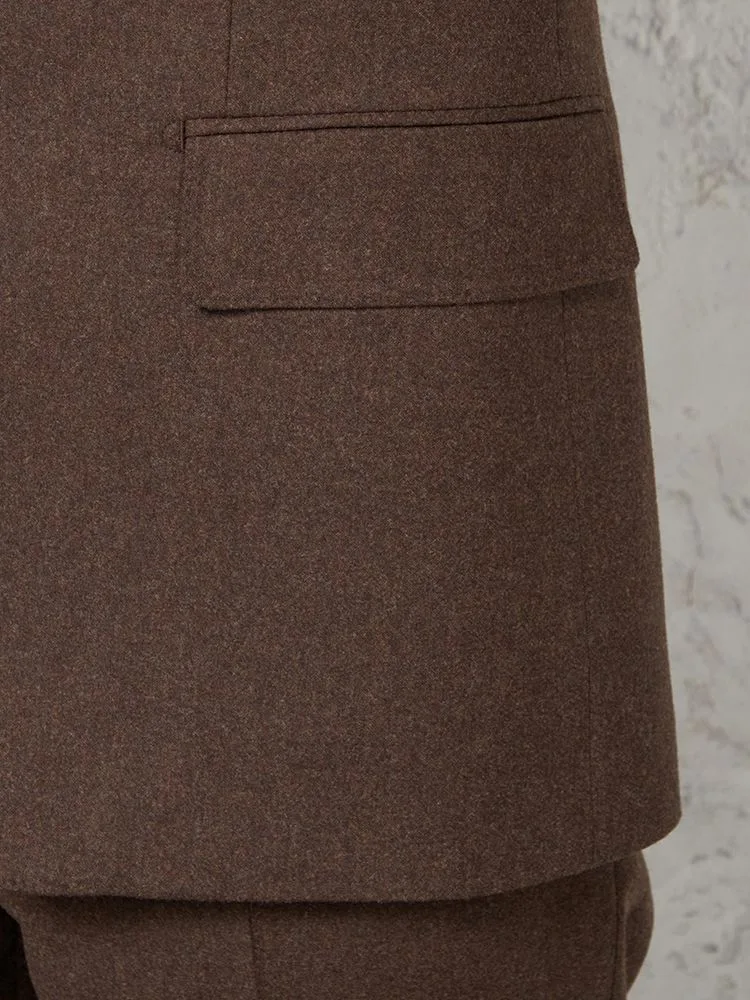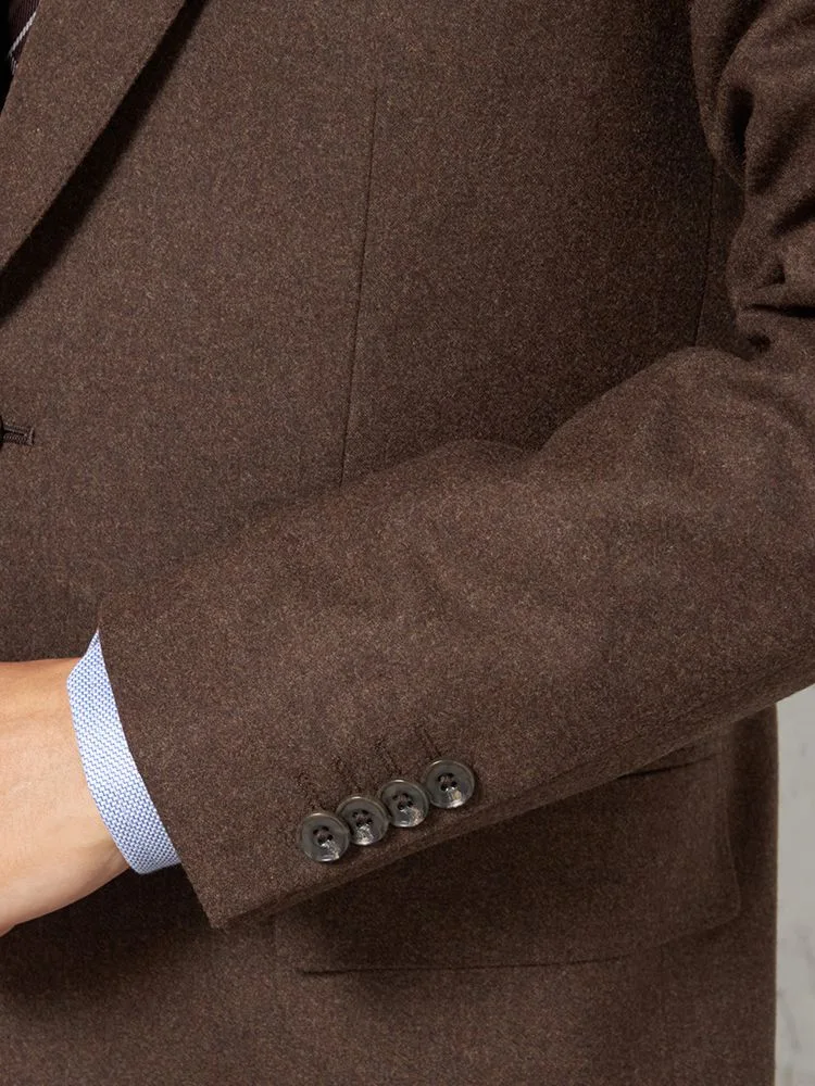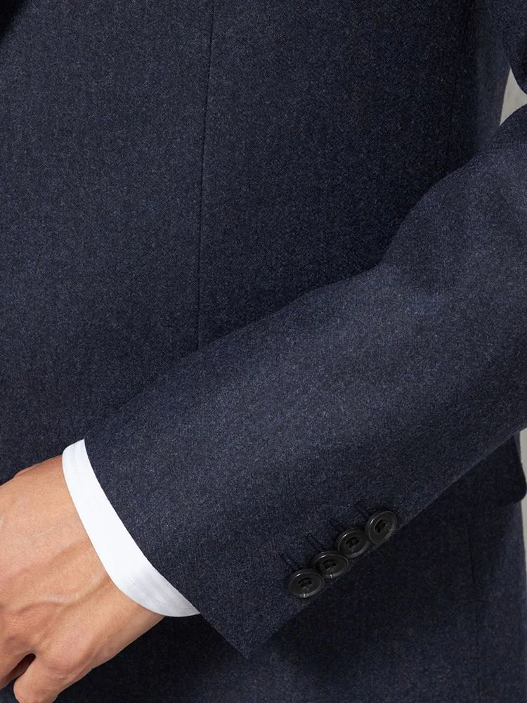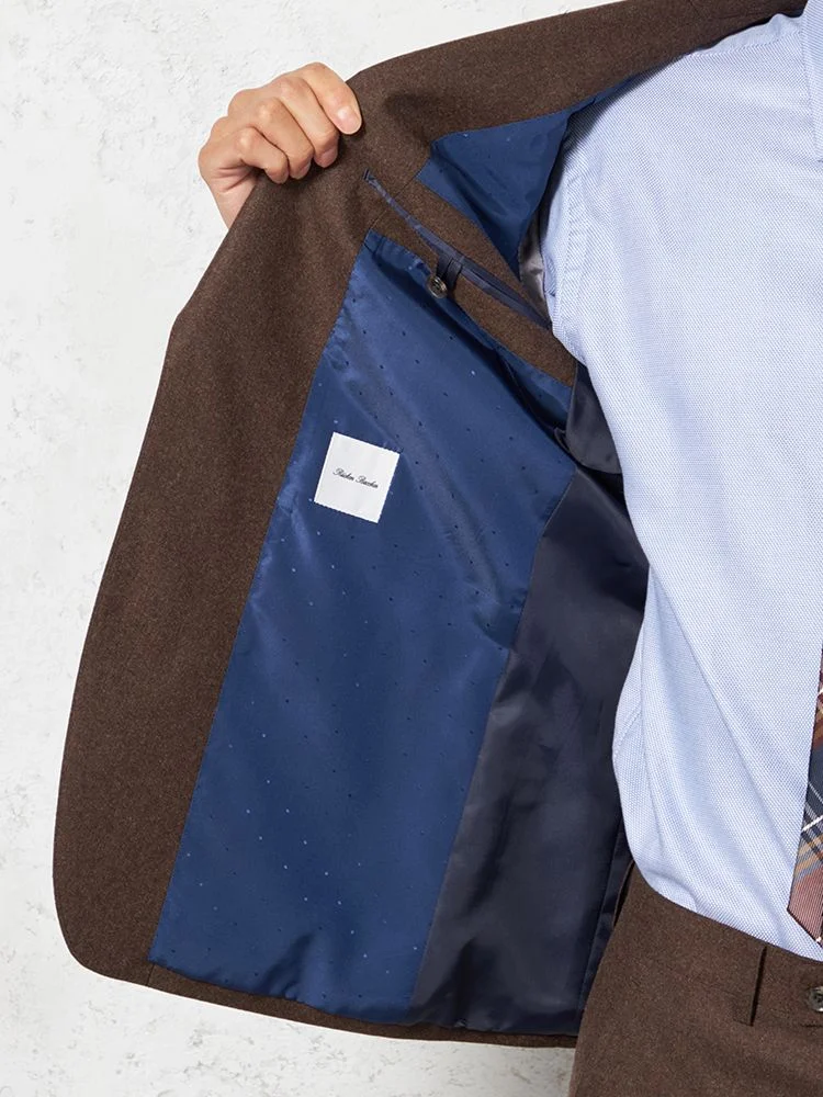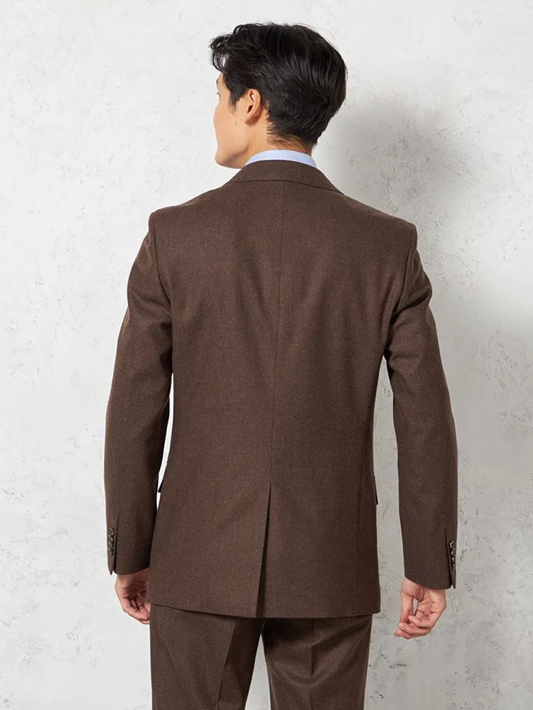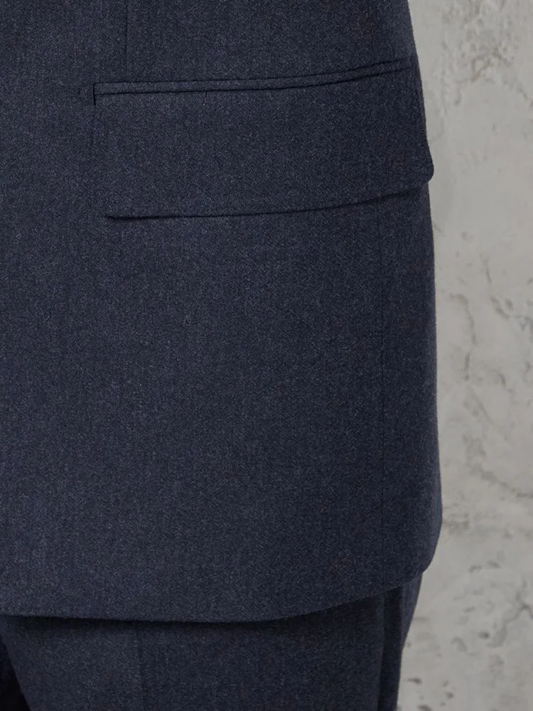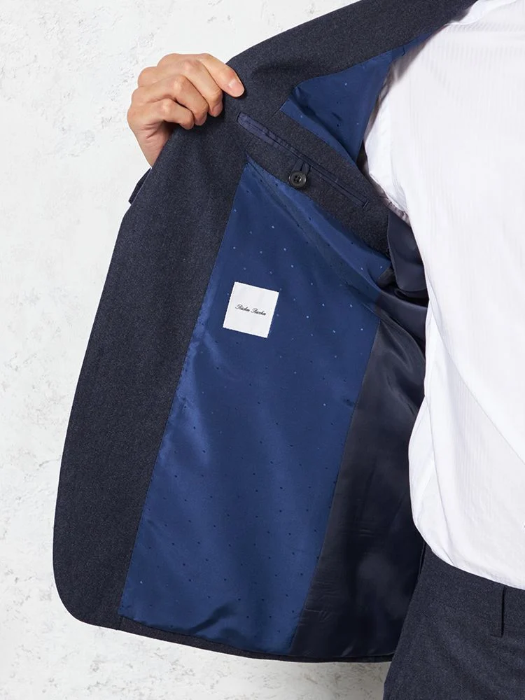 フェルトのような起毛感を持つ、温もりのあるイタリアンファブリックを用いた2ピーススーツです。