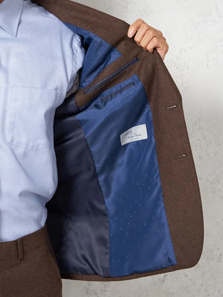 【ノータック】スーツ 2つボタン【REDA】イタリアインポート素材 織柄無地 リッケンバッカー 秋冬(D.ブラウン)