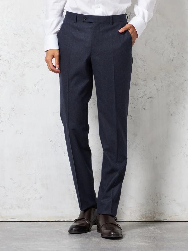 パンツの腰回りに生地の折り込みがなく、スッキリとしたシルエットを実現します。シンプルで洗練された印象を与え、すっきりとした着こなしが可能です。