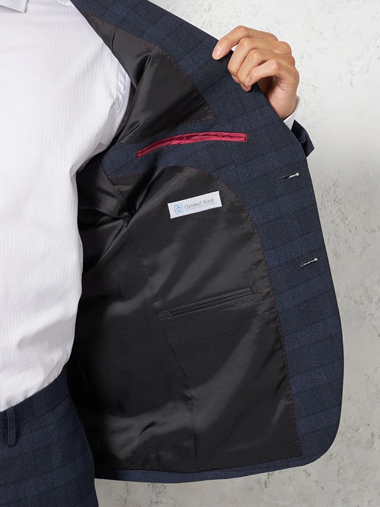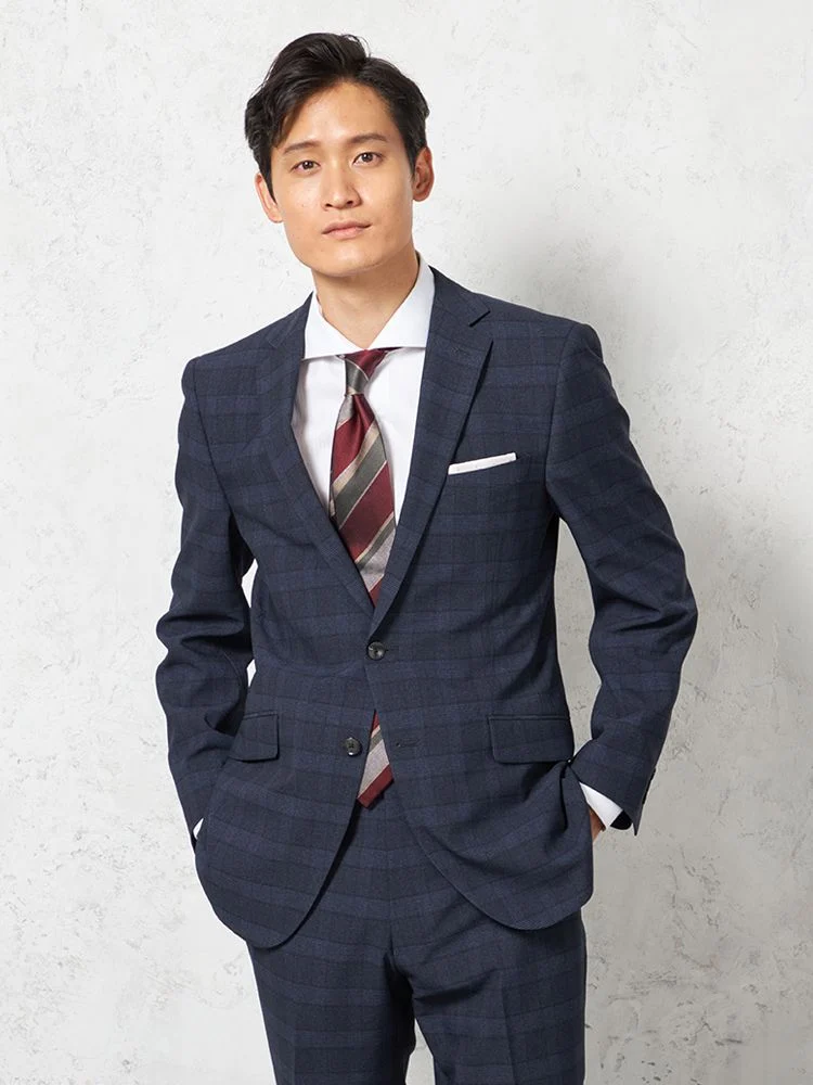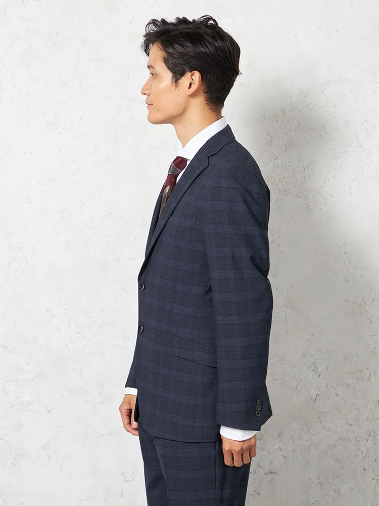 【上下ウォッシャブル】スーツ 2つボタン ウールライク チェック nero 秋冬【スリムデザイン】