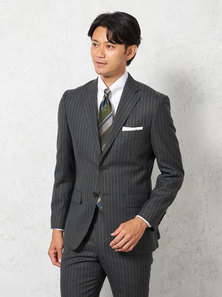 【ウール100%】スーツ2つボタン英国調ミルド脚長スリムチョークストライプS&MBLUELABEL秋冬