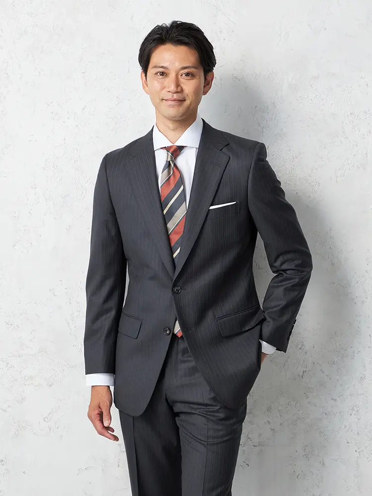 尾州産 SUPER110s素材を使用した高品質な一着。