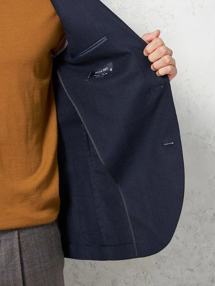 【ウール100%】ジャケット2つボタン【REDA】イタリアインポート素材軽量仕立てチェックネイビーRUCKENBACCHAR秋冬