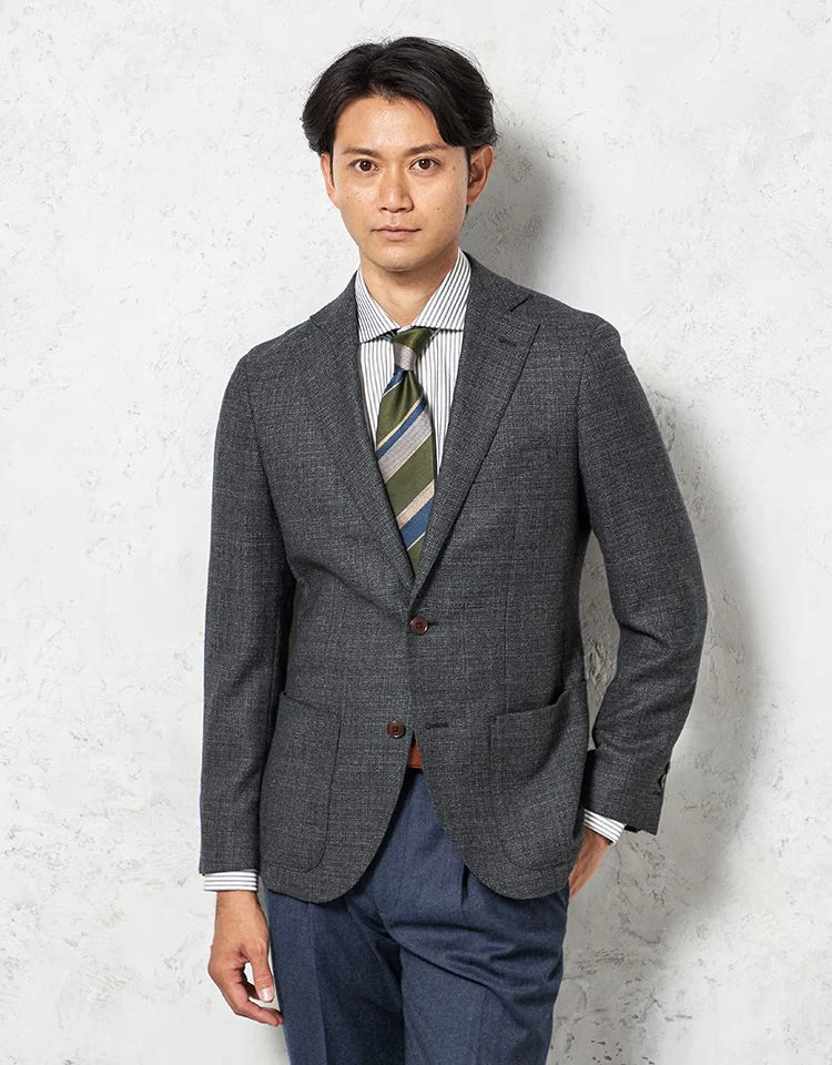 切り込みが2本のサイドベンツ仕様のアイテムです。クラシックでエレガントな印象を与えます。